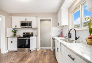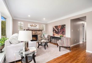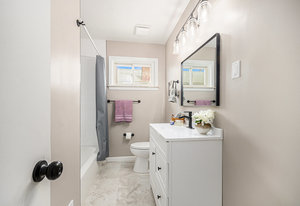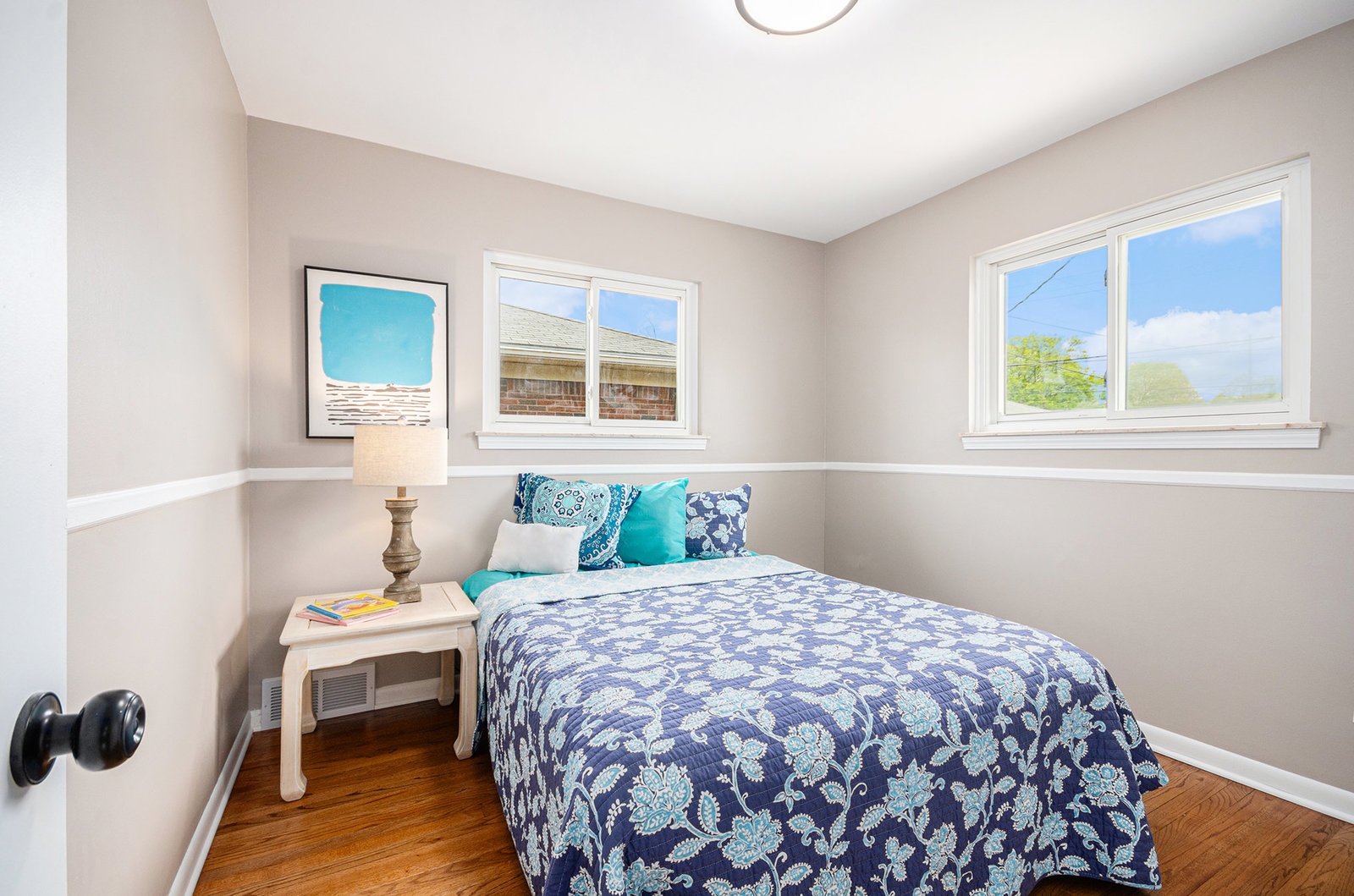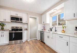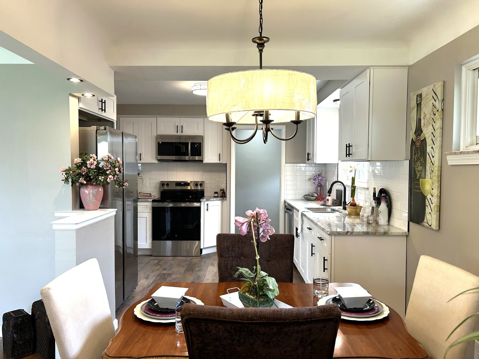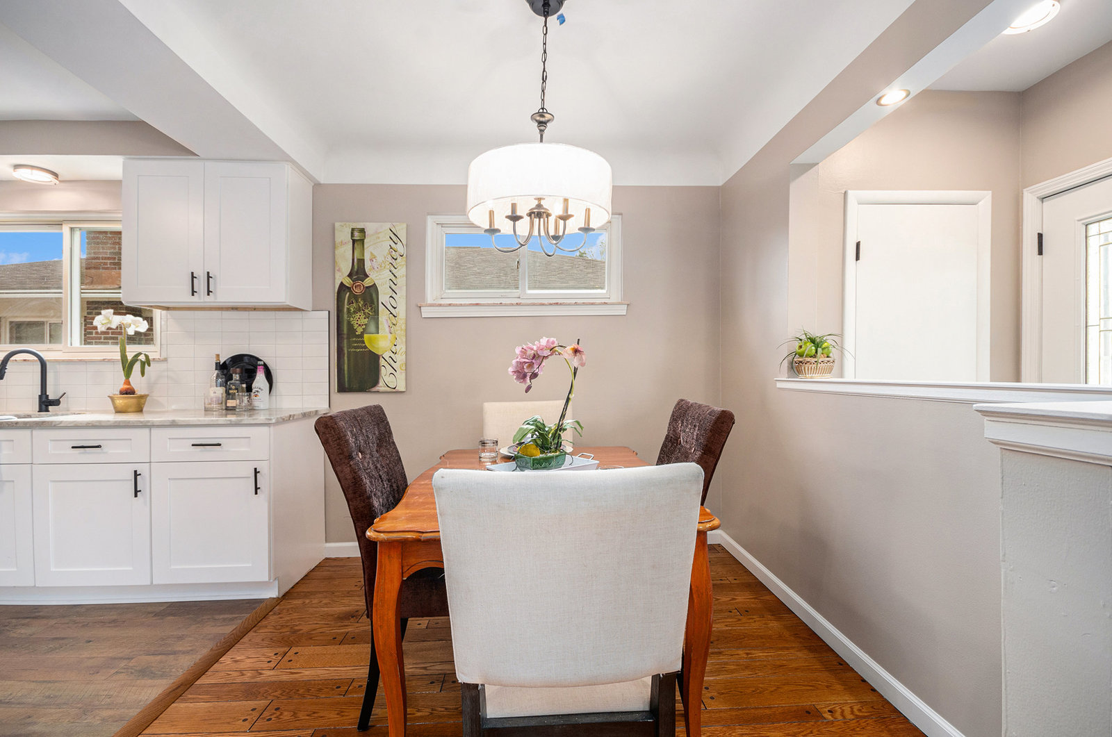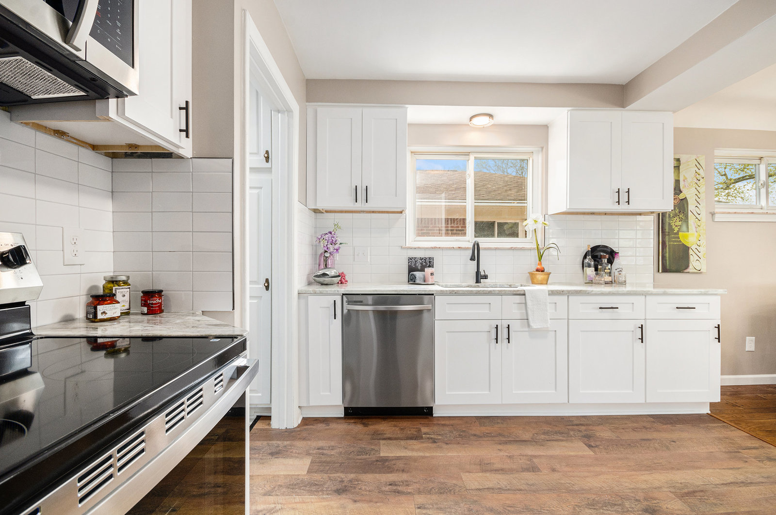 Beautifully remodeled 2025 brick ranch with a flowing floor plan and stylish updates throughout! The spacious living room is filled with natural light from the large bay window and features a cozy fieldstone fireplace, recessed lighting, and classic cove ceilings. The impressive kitchen offers granite countertops, white soft-close cabinets, white ceramic backsplash, brand-new stainless steel appliances, and a generous breakfast nook. Hardwood flooring extends through most of the main level. The primary bedroom includes two closets and a door leading to the backyard. Both full bathrooms—one on the main floor and one in the finished basement—are deluxe and updated. The finished basement includes luxury vinyl plank flooring, recessed lighting, glass block windows, and a large laundry room. Enjoy the outdoors in the nicely sized fenced backyard with a brick paver patio and a 2-car garage. A fantastic move-in-ready home with quality finishes!