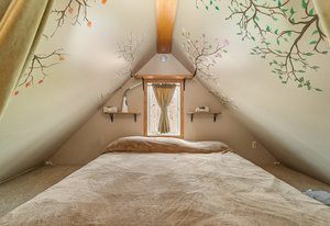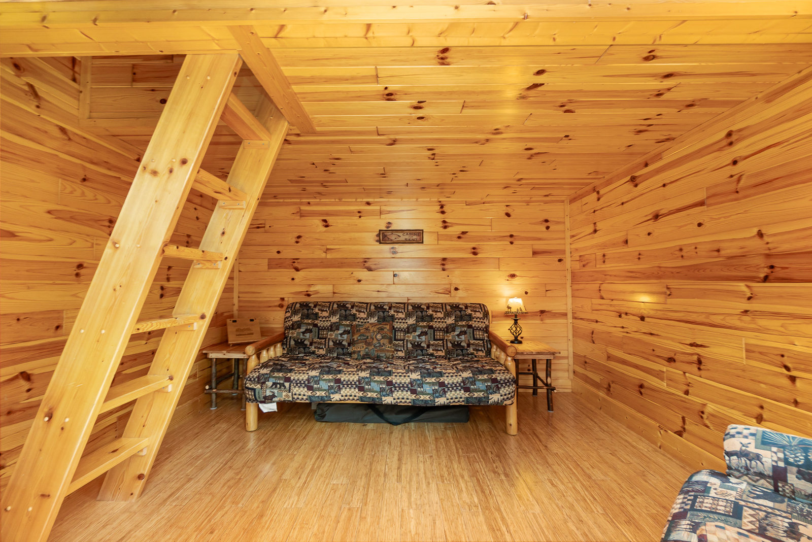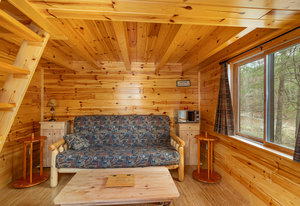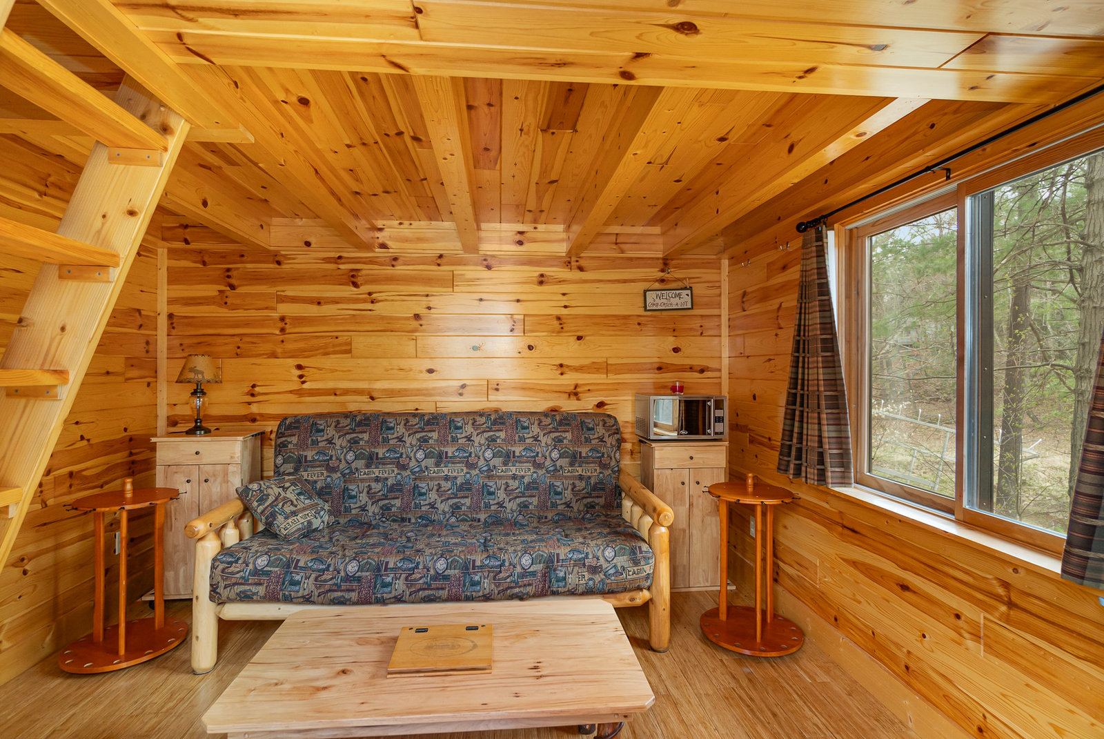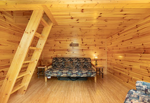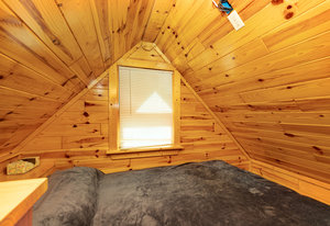 Upper Mini Cabin Ladder goes to Loft with Queen Sized Bed