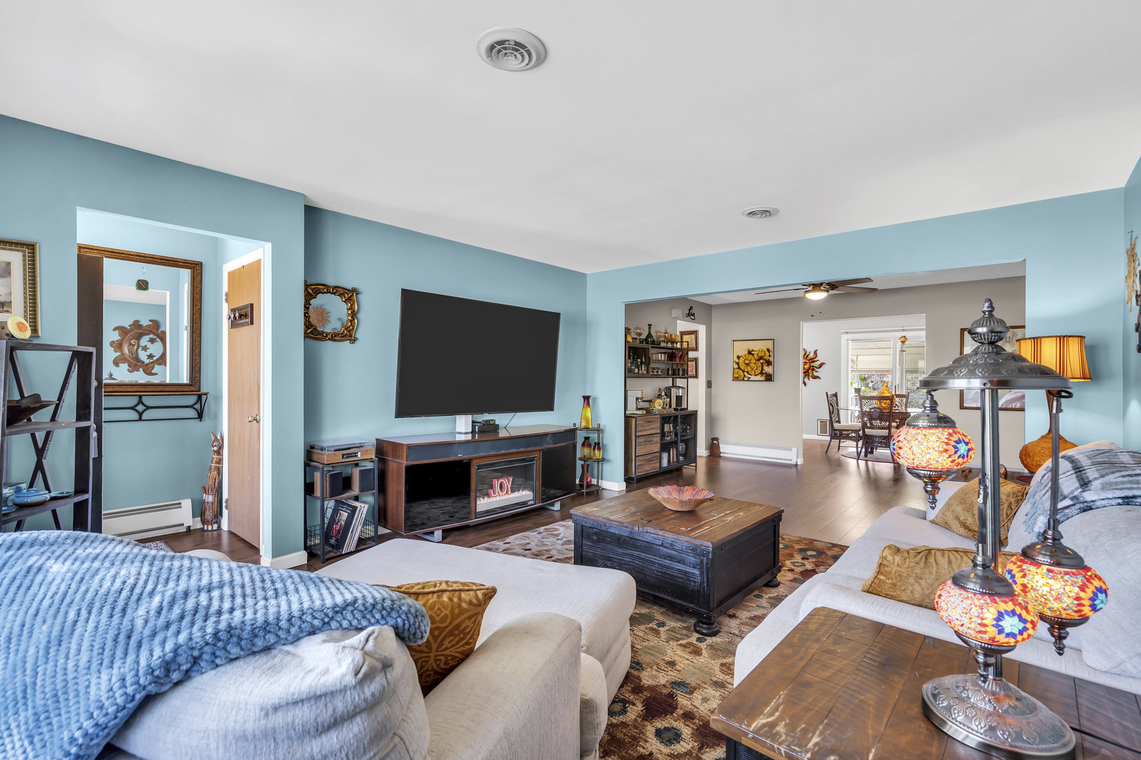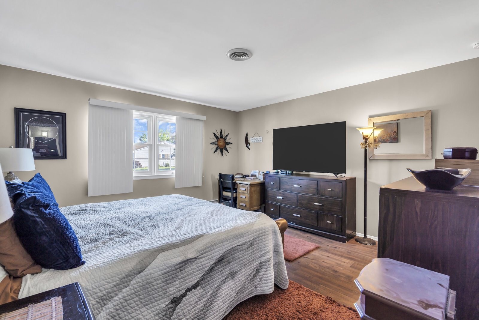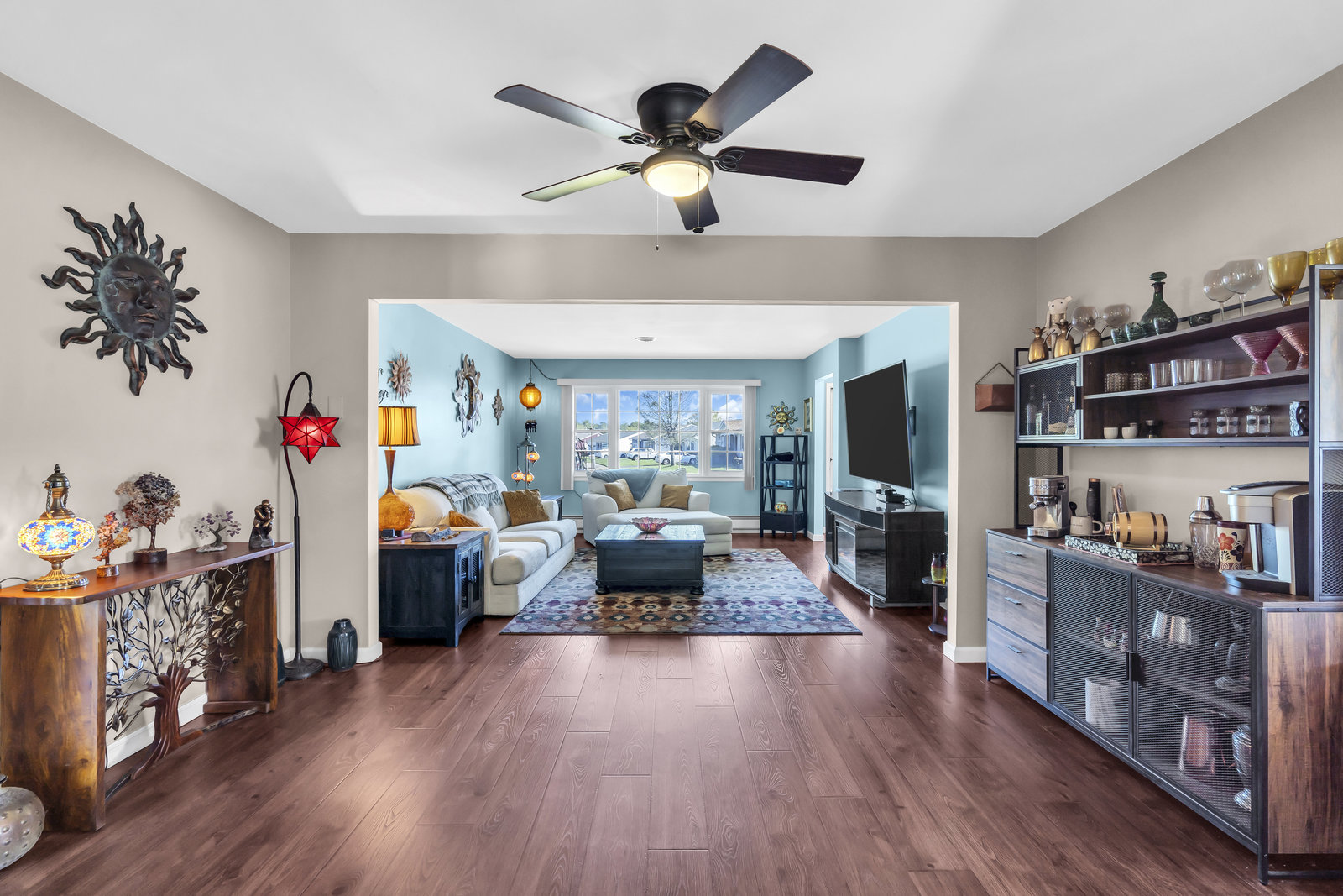 Location that can't be beaten! Sellers do not want to leave this great Yorkshire model home and its fantastic location -- but have a career opportunity they cannot turn down. It's like having your own nature park out back with a rear yard that leads down to a babbling brook. Enjoy this view and the wildlife from the bay window in the eat-in kitchen, the enclosed 3-season room with tile floor and newer windows, or the spacious pavers patio. The home is almost 1500 sq. ft. and has had numerous updates in the last 5 years. Kitchen features granite counters, eating peninsula & newer black stainless appliances. Floors are wide-plank laminate throughout the whole house and the roof is less than 2 years old. Call today to schedule your private tour!