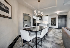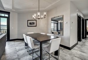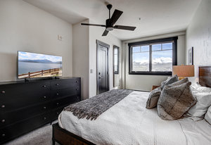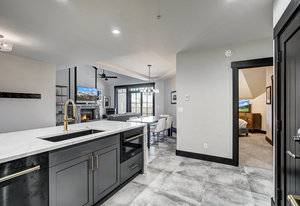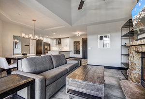 The pinnacle of modern, luxurious, slope side living. This 2 bed 2 bath condo has been unoccupied since it’s turnkey, full renovation and sits in the RESORT ZONE with NO Short Term Rental Restrictions. Radiant floor heating throughout welcomes and warms those cold and tired ski feet. The modern kitchen is appointed with all new black stainless steel Z-Line appliances, induction cook top, black sink, custom quartz waterfall backsplash and countertop with gold fixtures and hardware. The breakfast bar provides a great space to entertain while cooking. The bathrooms feature custom, natural stone showers with rainfall heads, WiFi controlled heated flooring and seating along with Kohler motion sensing, remote controlled smart bidet toilets. The primary bath features dual showers and vanities along with a front and back light mirror. The bedrooms are appointed with all new furnishings including King sized beds with the mattresses still in the plastics. New Samsung Smart TV's in living room and bedrooms and custom remote controlled window blinds throughout. Brand new black stainless steel washer/dryer laundry center. Crystal Peak and One Ski Hill Place amenities include heated parking, ski lockers, steam sauna, hot tubs, bowling alley, movie theater and exercise room. The gondola and shuttle to town stop right by the lodge for easy transportation to a day of boutique shopping and local eating. If you desire for fresh powder, the Independence Super Chair sits a few yards away from your private ski locker room. A rare opportunity to own a BRAND NEW, un-touched, true ski-in ski-out experience.