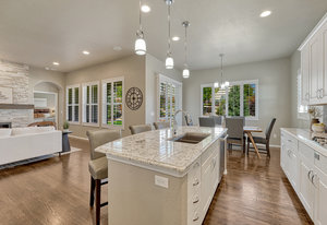 It’s not just a home, it’s a lifestyle. Welcome to 3242 Waterfront Drive, nestled in the heart of the sought-after Forest Lakes community. This mountain resort-style neighborhood features two lakes, scenic hiking trails, and a vibrant central gathering area with a playground, picnic spots, and a gazebo that hosts summer concerts. Bristlecone Lake invites paddleboards, kayaks, canoes, and catch-and-release fishing, bringing outdoor adventure to your doorstep. Feel the stress melt away in this nature-rich haven, where wildlife like deer, bald eagles, and the protected Preble’s Meadow Jumping Mouse make regular appearances. This home is a beautiful addition to the community, offering a low-maintenance exterior and thoughtfully designed interior. Step through the alcove entry onto Red Oak hardwood floors on the main level. The open layout includes a central living room, gourmet kitchen with granite beveled-edge counters, 5-burner gas cooktop, 42” cabinets, glass subway tile backsplash, double oven, and a coffee/butler’s pantry. Plantation shutters accent every window, and custom built-ins add style and storage. The main level also includes a spacious primary suite with a spa-like 5-piece bath, shower with bench, and custom walk-in closet. A second bedroom, full bath, office/formal dining, laundry with utility sink, and a 3-car finished garage with epoxy floors complete the main level. The finished lower level is perfect for entertaining, with a large family/game room (pool table included), two bedrooms with walk-in closets, a third full bath, and a large storage room. Enjoy Colorado evenings on the partially covered patio, surrounded by a beautifully landscaped yard, mature trees, and views of Mt. Herman. Thoughtful details throughout make this more than just a house, it’s your next chapter.