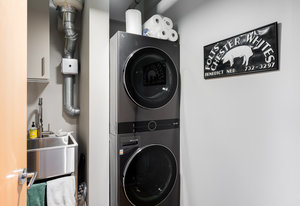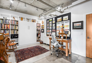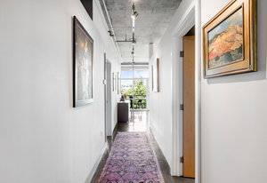 The thoughtful and spacious main room layout has distinct areas for both work and relaxation-a perfect office space, expansive dining area, and inviting living room. The den, designed with custom walnut bookcases, creates an intimate space for reading and watching movies. The flexible second bedroom doubles as an art studio or guest space, complete with a Murphy bed (included) and spacious walk-in closet outfitted with Elfa organizational systems. Two private, covered patios extend the living space outdoors, ideal for alfresco dining or simply enjoying the surrounding beauty of this prime Riverfront Park locale. Additional conveniences include two dedicated parking spaces with an EV charger, as well as a private 132 sq ft storage unit located just down the hall for easy access. This remarkable home offers an exceptional lifestyle just moments from Denver’s finest dining, galleries, boutiques, and parks.