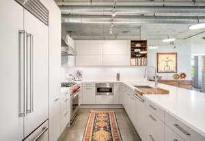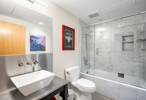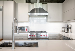 The new kitchen is a masterpiece of design, featuring Leicht cabinetry with intelligent pull-out shelves and integrated plug-ins, a two-temperature wine fridge, and a suite of top-tier appliances, including a Wolf four-burner gas range with a center grill and wok attachment, complemented by a sleek stainless-steel hood. The deep undermount sink, Subzero paneled refrigerator, and Cove dishwasher are all newly installed, offering a sophisticated and functional space for culinary pursuits.