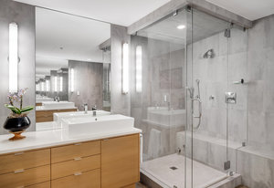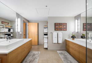 Every detail has been meticulously designed, from the brand-new, powered Hunter Douglas blinds to the wall of windows that bathe the home in natural light. New lighting throughout the residence casts a refined glow, enhancing the polished concrete floors that flow seamlessly throughout.