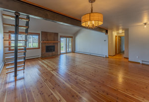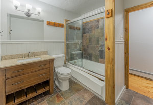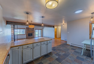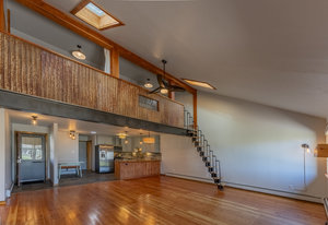 This golf course frontage Heatherwood condo unit is located between the 5th green and the 6th tee box on Dos Rios golf course. The ranch floor plan features 3 bedrooms, 2 bathrooms and a 2 car heated garage. A gas fireplace warms the open living, kitchen and dining area. Features include two Velux skylights, wood flooring, granite countertops and a cultured stone backsplash. A compact staircase accesses the loft overlooking the living area, with adequate space for nearly any use. The primary suite opens to the deck via a sliding door, and includes a 3/4 ensuite bath with a tiled shower. Two additional bedrooms share the full, common hallway bath, also finished in tile. Just off the living room is a comfortable spacious deck, overlooking the golf course. The property offers a quiet, comfortable, and cozy living experience.