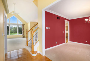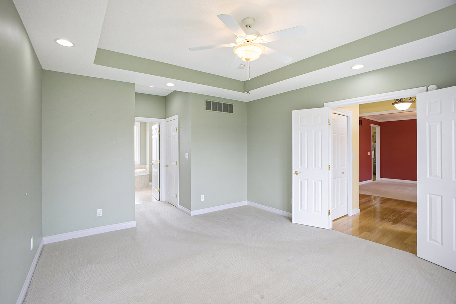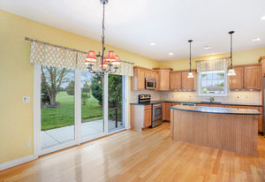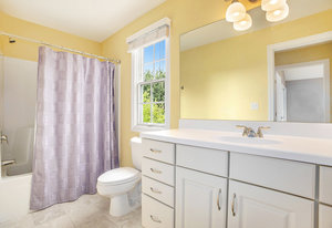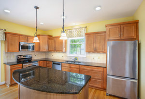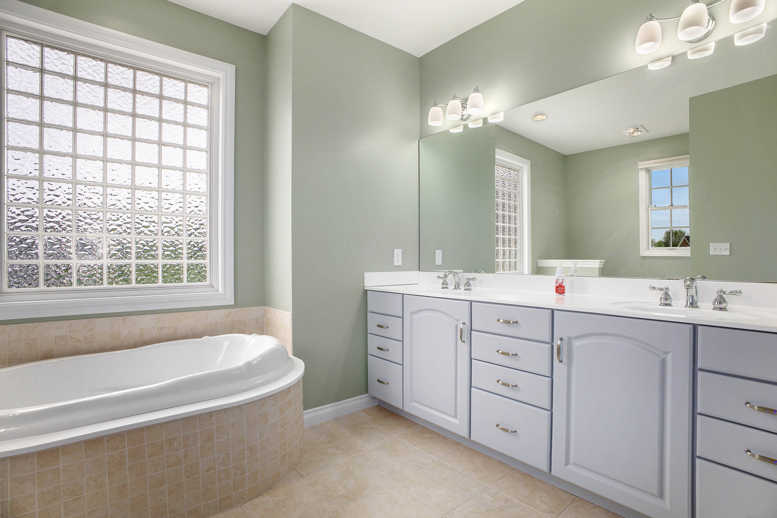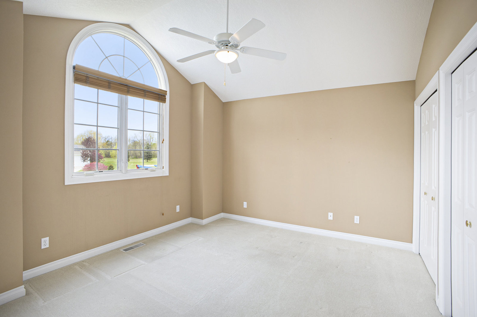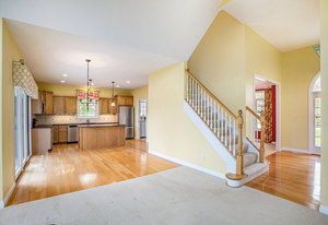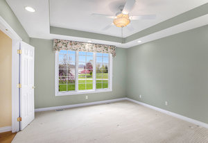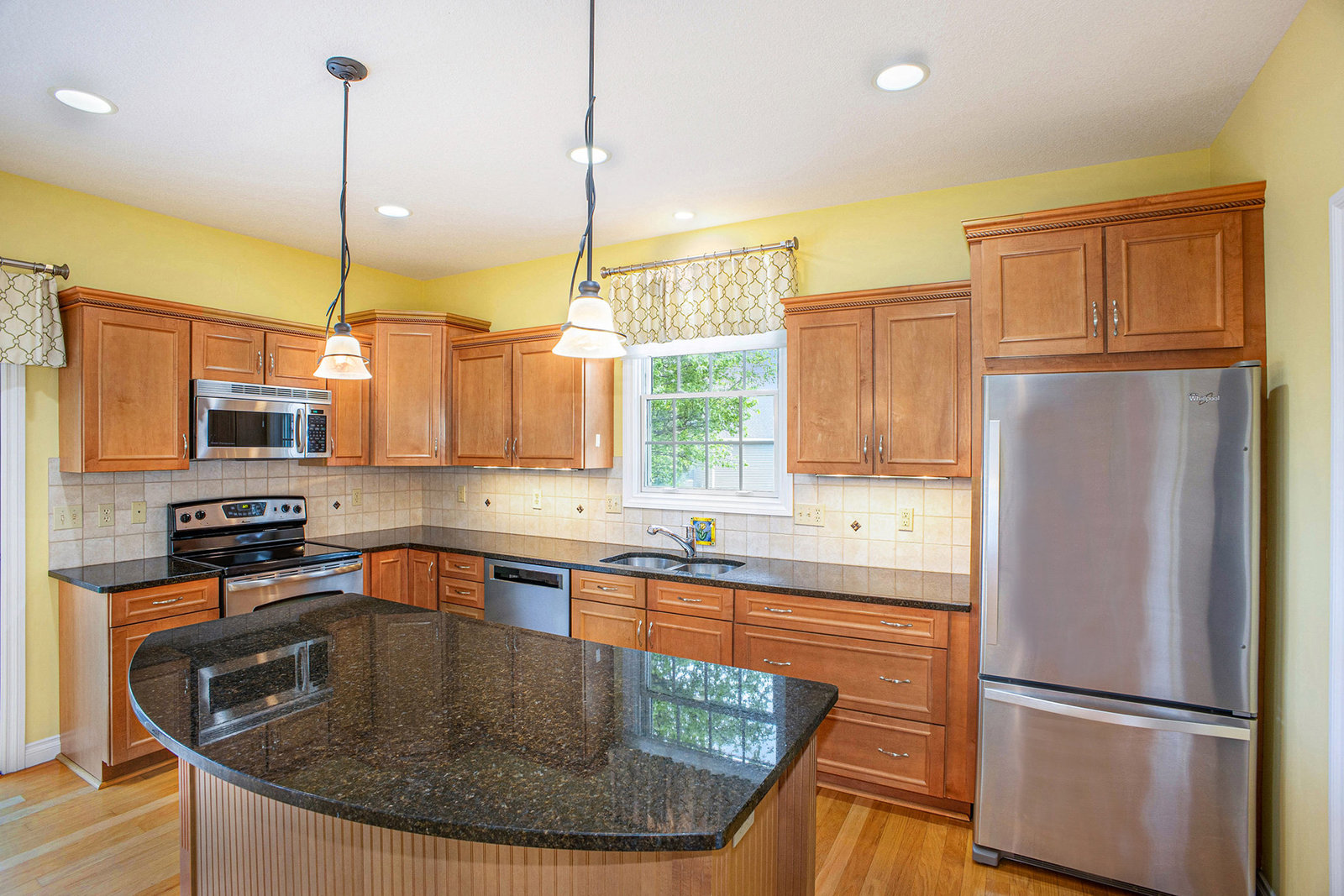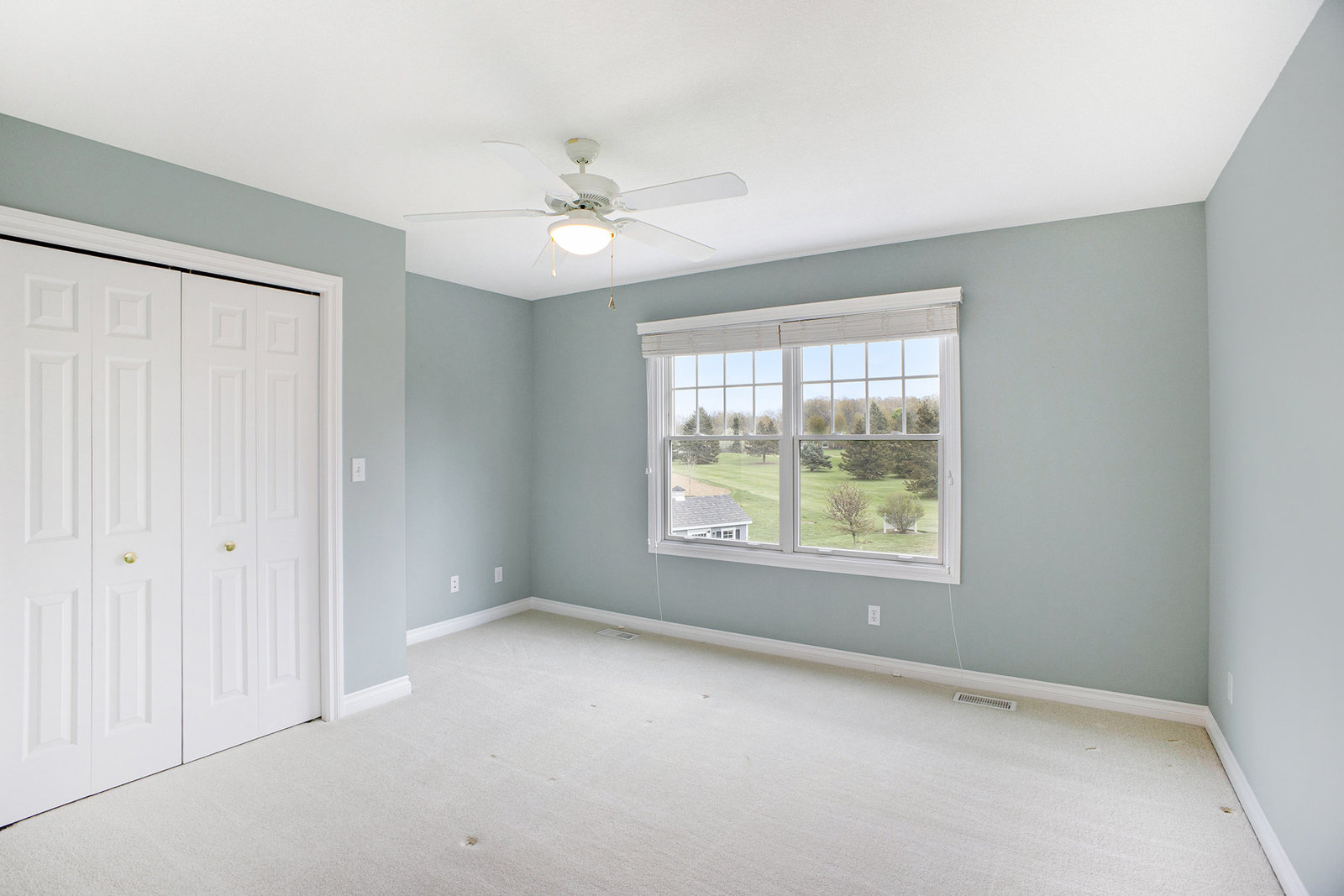 Impeccably maintained, this contemporary home sits on the tee box of Hole 6 with breathtaking views. The gourmet kitchen features maple cabinets, granite countertops, and a large island. The vaulted living room boasts a gas log fireplace and a wall of windows for abundant natural light. A formal dining room adds elegance. The main floor primary suite offers a luxurious bath with a soaking tub and shower. Upstairs, find two spacious bedrooms and a full bath. A full basement provides extra potential. Enjoy a professionally landscaped yard, concrete patio with power awning, storage shed, and a three-car garage with an epoxy floor.