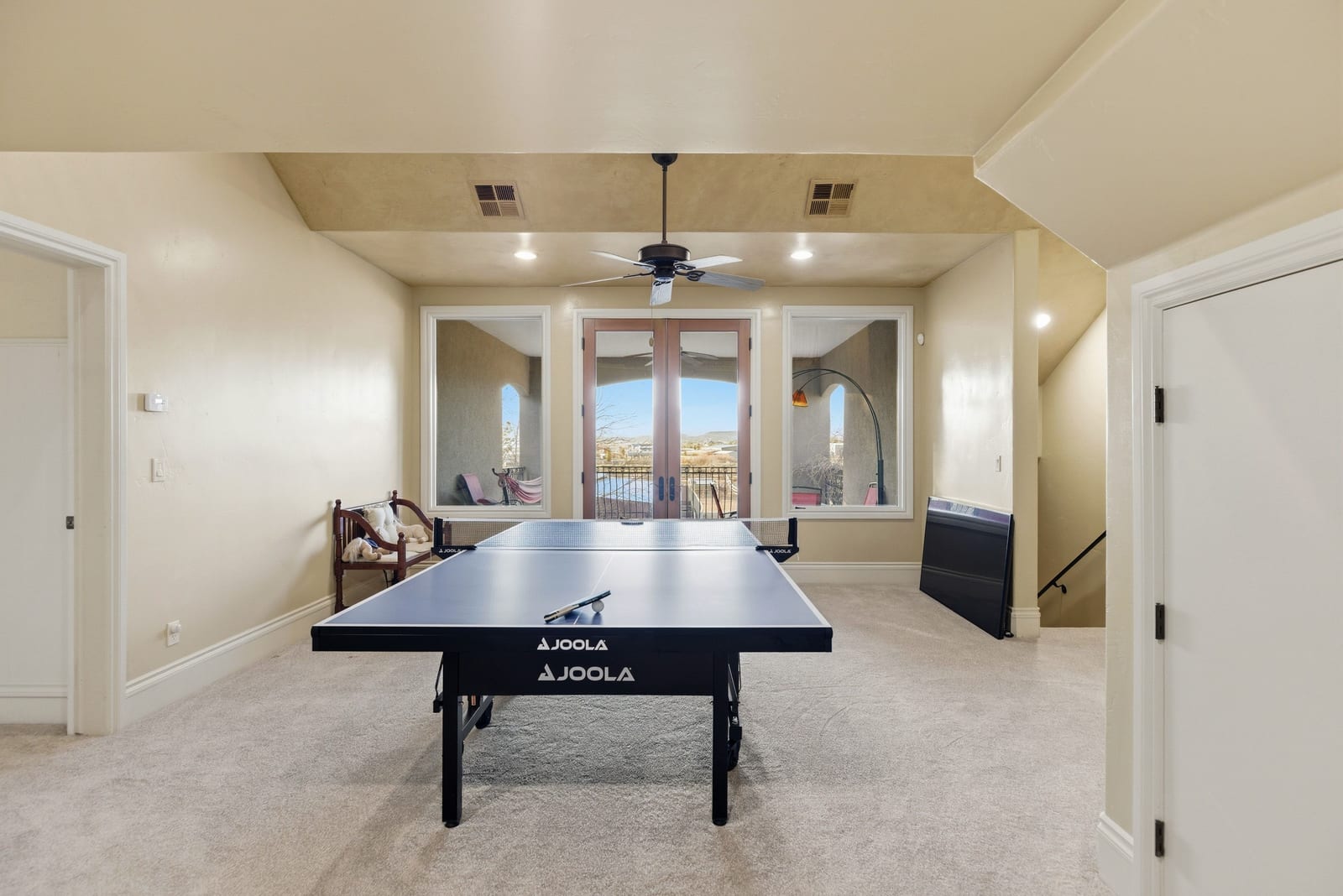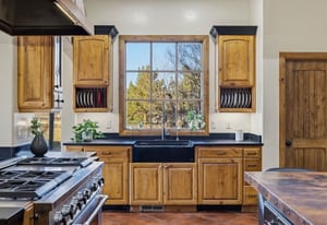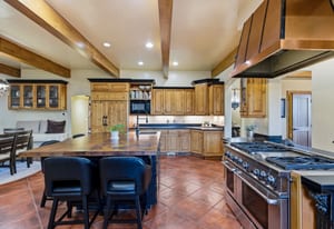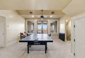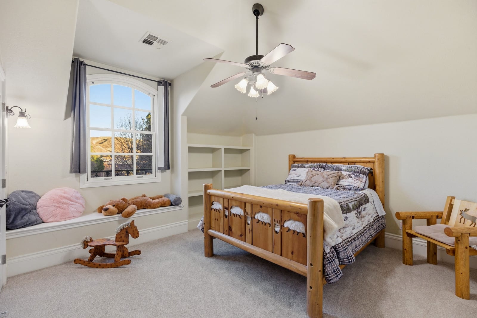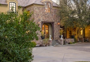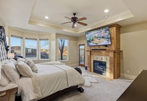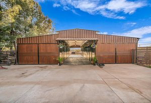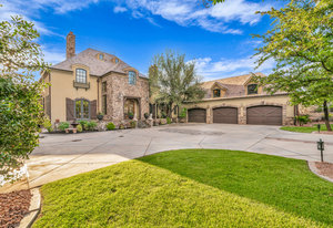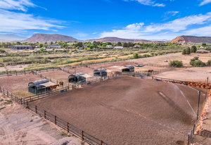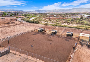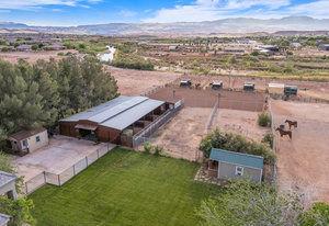 Seller Financing Available--Located in Bloomington Ranches, Southern Utah's most prestigious estate properties, this equestrian estate is truly unmatched. Set behind a private, secure gate on over 2 fully-fenced acres, it blends old-world European charm with modern luxury and exceptional privacy. The residence features imported stone fireplaces and flooring, stained glass accents, and expansive windows with views of the Virgin River and adjacent walking/bike path. Outdoor living shines with a sunset-facing patio and fully equipped outdoor kitchen. The property includes a custom barn with 8 oversized European-style horse stalls, a professional riding arena, and 2 shares of irrigation water....