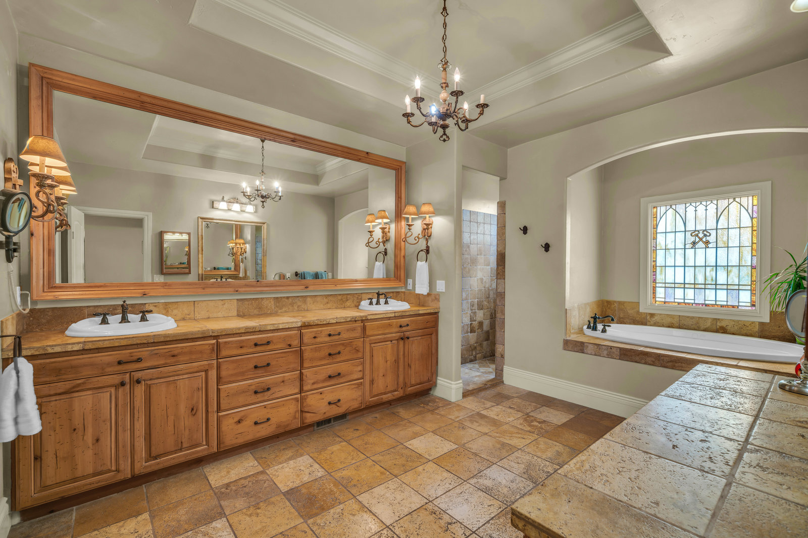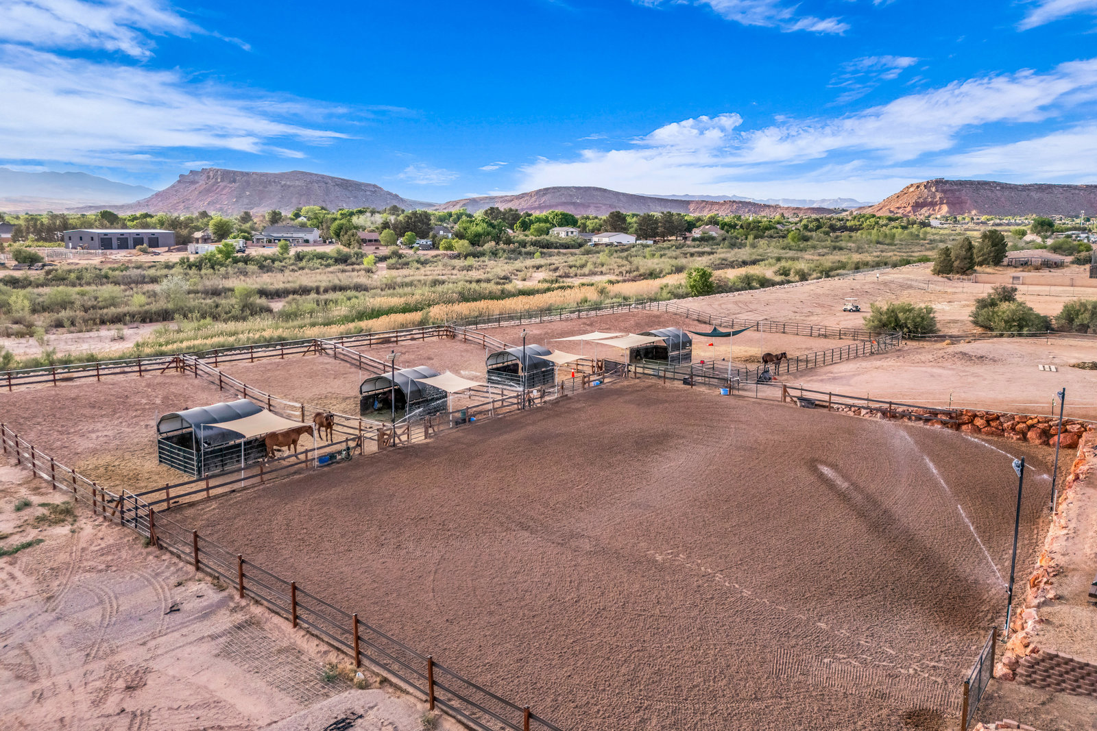 Seller Financing Available--Located in Bloomington Ranches, Southern Utah's most prestigious estate properties, this equestrian estate is truly unmatched. Set behind a private, secure gate on over 2 fully-fenced acres, it blends old-world European charm with modern luxury and exceptional privacy. The residence features imported stone fireplaces and flooring, stained glass accents, and expansive windows with views of the Virgin River and adjacent walking/bike path. Outdoor living shines with a sunset-facing patio and fully equipped outdoor kitchen. Built for a serious equestrian, the property includes a custom barn with 8 oversized European-style stalls, a professional riding arena, and 2 shares...