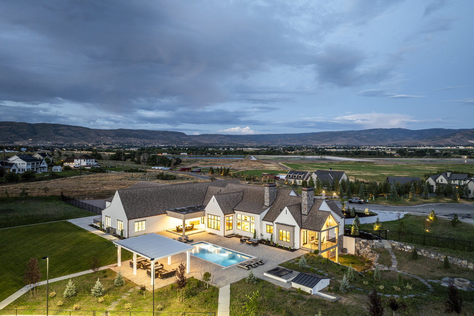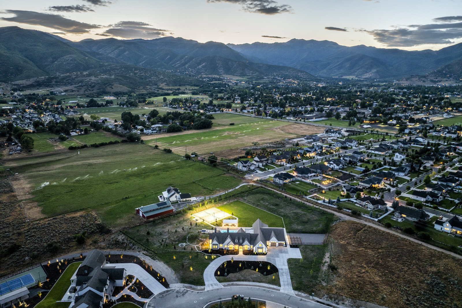 Welcome to a brand new multi-generational mountain retreat in Midway, Utah that you have to see and believe. Situated on a quiet cul-de-sac surrounded by newly built, grand estate homes, this light-filled masterpiece in charming Midway blends chic small town with elevated, luxury living. Just minutes from world-class skiing at Deer Valley and a vibrant dining scene, this home offers both convenience and tranquility in one of Utah's most picturesque settings. Expertly designed and built with enduring quality, this architectural gem showcases timeless craftsmanship and premium finishes throughout. The gourmet kitchen is a chef's dream—featuring Wolf and Sub-Zero appliances, enough counter space for your largest events and a pantry that will blow you away! The home continues to impress with a suite of luxury amenities rarely found in a private residence. The indoor padel/pickleball court offers year-round recreation, while the professional-grade golf simulator lets you perfect your swing no matter the season. Stay active in the fully equipped home gym, and unwind in your private theater—ideal for movie nights, game days, or immersive entertainment experiences. Every space is thoughtfully designed to elevate everyday living. Step outside to enjoy your own private, fully fenced backyard, complete with a heated pool, hot tub, and covered pergola. Gather around the fire pit to share stories or challenge guests to a match on the outdoor pickleball/pop-tennis courts. A separate fenced raised bed garden with irrigation is ready for your farm-to-table dreams. With an abundance of attached garage space—including room for RVs, boats, toys, or as many as 12 cars—this estate offers ultimate flexibility and storage . This is more than a home; it's a legacy property. All information herein is deemed reliable but is not guaranteed.