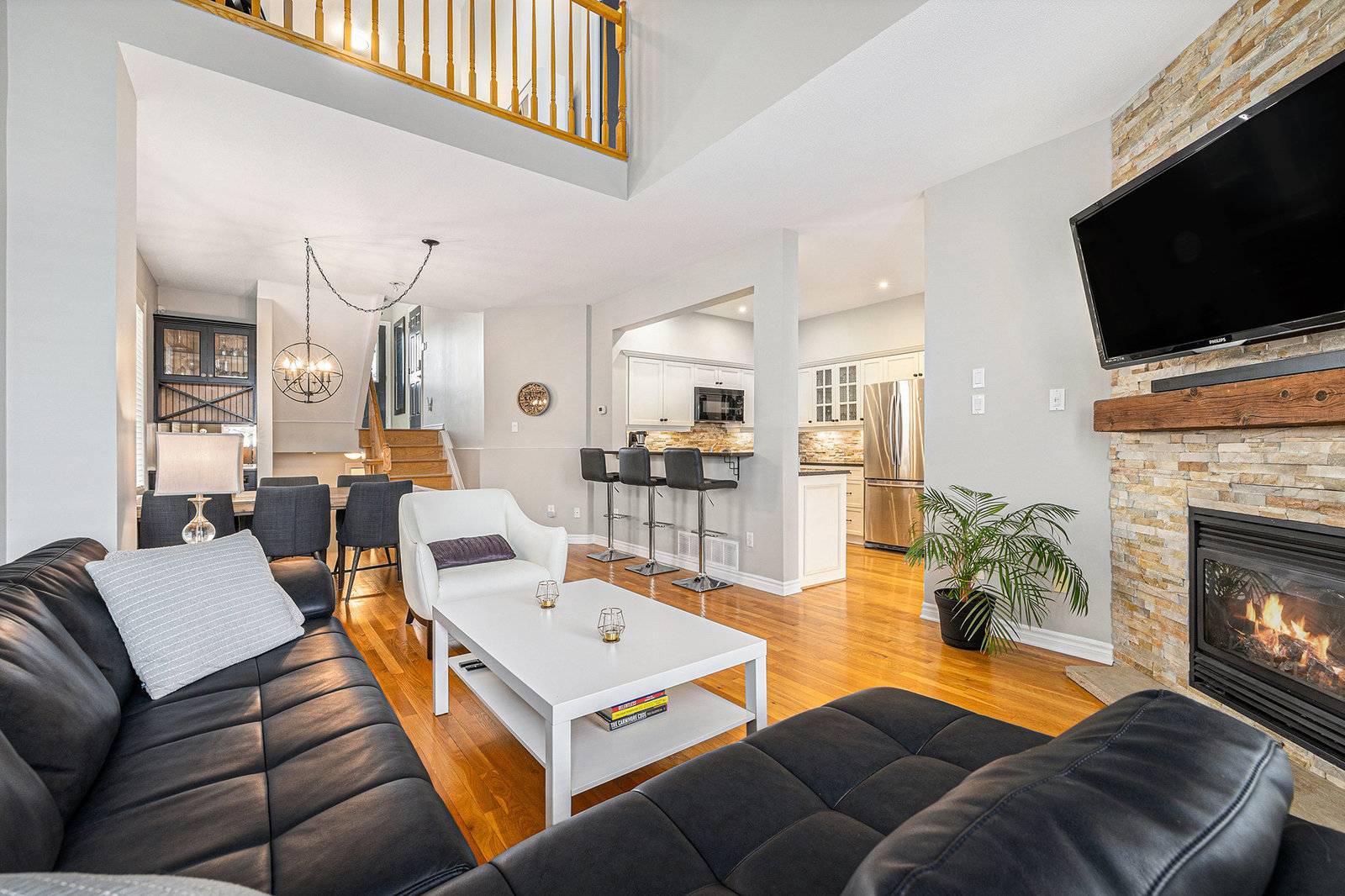 Tucked away on a quiet, private street just steps from Manotick's vibrant village core, this stunning townhome will blow you away with its space, style, and lifestyle perks! Step inside and be amazed by the spacious main level - perfect for entertaining or cozy family nights. The open-concept layout features a bright, modern kitchen with a sit-up bar, flowing into a large living with vaulted ceiling & dining area. Downstairs, the fully finished basement is warm & inviting, complete with a full bathroom, loads of space to unwind, and even an optional sauna for your own private spa vibes! Upstairs, the huge loft is ideal for a home office, gym, or creative space. The primary suite offers a walk-in closet with custom organizers and a 3-piece ensuite. Two more bedrooms and a large main bath complete the upper level. The backyard is where the magic happens! From spring through fall, you'll live out here - enjoying the expansive deck, cozy gazebo, and total privacy thanks to mature trees that make it feel like you're backing onto a forest. There's even an optional hot tub (currently working but needs a pump and cover) - or the seller will remove it if you prefer. Everything's been taken care of: New roof, garage door, windows, and driveway. Hardwood floors throughout the main and second levels. Tons of storage. Truly move-in ready! Bonus: The home is available fully furnished! All furnishings are negotiable and can be included in ...