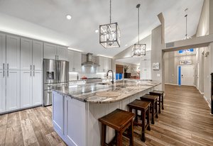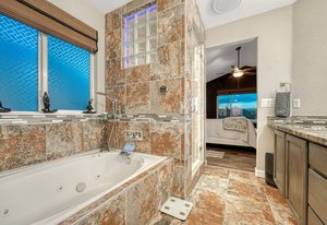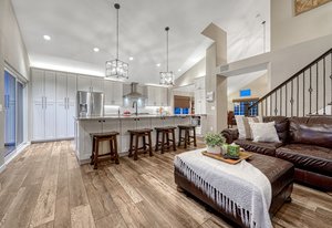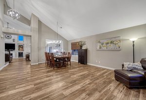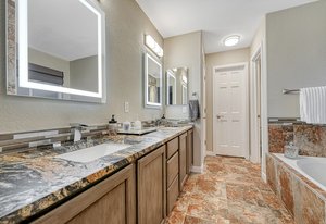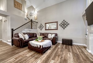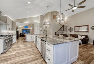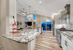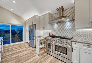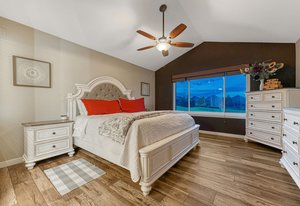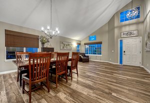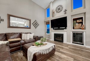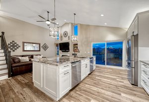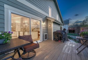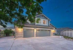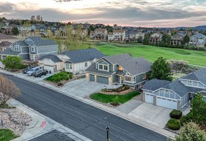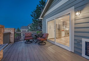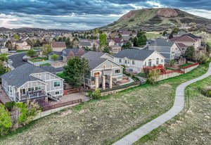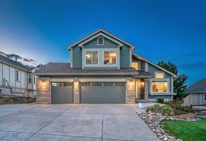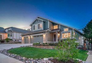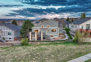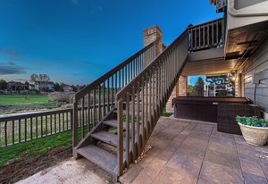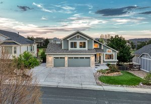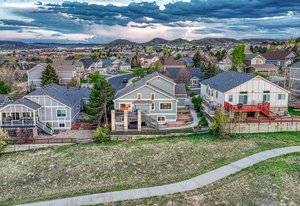 Perfectly positioned on a premium lot backing to Hole #7 of Red Hawk Ridge Golf Course, this exceptional 5-bed, 4-bath home with an office is a Colorado gem. Combining luxurious finishes, breathtaking views, and thoughtful upgrades, this home offers comfort, elegance, and functionality in perfect harmony. Step into the heart of the home, a newly renovated chef’s kitchen that is anchored by an impressive 6’x10’ center island, the space features exquisite quartzite countertops, a stainless steel 8-burner Forno gas range, under-cabinet lighting, custom soft-close cabinetry with lower roll-out shelving, a custom built-in pantry, a pull-out spice rack, built-in microwave, and two dishwashers, making entertaining a dream. The adjacent great room is a showstopper with soaring ceilings, a gas fireplace, wine cooler, and elegant luxury vinyl flooring throughout most of the main level—ideal for both intimate evenings and lively gatherings. The main-level primary suite is a sanctuary, boasting golf course views and a spa-worthy 5-piece ensuite bathroom featuring leathered granite counters, lighted mirrors, and a luxurious steam shower with an over rain shower. Upstairs, you'll find two spacious bedrooms and a private office—perfect for today’s work-from home lifestyle. The finished walk-out basement expands your living space with two additional bedrooms and a rec room complete with a wet bar. Step outside to a covered patio and unwind in the hot tub while taking in Colorado sunsets. Function meets design throughout the home with abundant storage options, including a dedicated main-level laundry room with included washer and dryer, a folding counter, and plenty of cabinetry. Additional perks include built-in storage throughout, a built-in custom storage shed, and space for everything you need—whether hobbies, gear, or seasonal décor. This is more than a home—it's a lifestyle. Come experience elevated golf course living in a one-of-a-kind property that truly has it all.