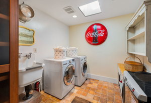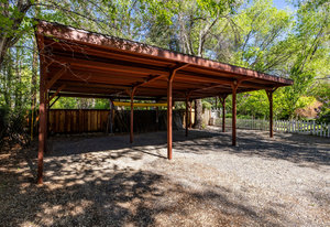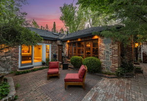 Welcome to Marsh Manor, a captivating property featuring a blend of brick and stone, nestled beneath a towering canopy of trees. Meandering pathways wind through the lush, landscaped 0.85-acre lot, offering a serene escape. The estate harks back to its roots as a 5-acre ranch, with the old working wagon standing as a charming reminder of its past. This peaceful one-story home, adorned with custom, high-quality finishes, serves as a true retreat. A remodeled caretakers cottage also on the property could serve as a guest house or short or long term rental home.