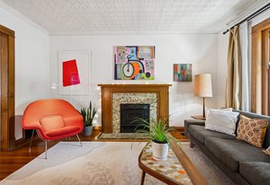 A new chapter begins at this classic Denver Square, where timeless architecture, thoughtful updates, and dreamy gardens converge on one of Capitol Hill’s most peaceful blocks. Notable features include a rare 3-car garage, an impressive kitchen renovation, a new roof (May 2025), amazing outdoor spaces and Andersen windows in the kitchen and upper level. The entry foyer, with its stained glass and grand quarter-sawn staircase, offers a timeless first impression. New designer tile placed from entry to kitchen. Original details like hand-painted coffered ceilings, fireplace and picture window in the living room speak to the home’s enduring character. The dining room features a built-in buffet with enchanting views of the vibrant backyard. The kitchen is a true standout—fully reimagined with quartz countertops, custom 42” cabinetry, two pantries, stainless appliances, and gas stove. Step into the stunning backyard directly from the kitchen—an ideal setting for entertaining guests. Upstairs, brand new oak hardwood floors span the second level. The spacious primary suite includes two closets, a serene primary bathroom and a private upper balcony perfect for morning coffee. Original built-in linen closet located at the top of the stairs. Two additional bedrooms and a guest bath with clawfoot tub complete the upper floor. The finished basement includes a family room, office, craft room, laundry, storage/utility room, and a full bath. Out back, the yard is a thoughtful blend of beauty and function—covered porch, dining patio, lush native gardens, and the perfect area of grass. Enjoy the best of Capitol Hill—just five blocks from Cheesman Park, with Whole Foods and restaurants at the end of the block. King Soopers, Safeway, and Trader Joe’s are all within easy walking distance. Come tour this warm and welcoming Denver Square today, where every detail has been thoughtfully considered.