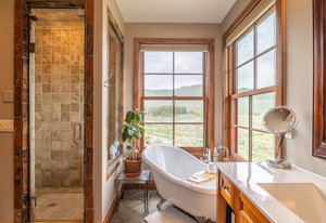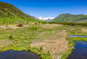 Private and secluded at Peanut Lake, this 57 acre ranch property enjoys dramatic panoramic views of the lake, the surrounding mountains and the historic town of Crested Butte. The iconic peaks of Mt. Crested Butte and Whetstone Mountain dominate the view to the east while the Paradise Divide range and Gothic Mountain fill the skyline to the west. This is the Slate River Valley, a critical riparian zone and home to amazing wildlife habitat that includes great blue heron, geese, ducks, elk, moose, fox and coyote. The stunning lakefront location enjoys a common boundary with Crested Butte Land Trust conservation land on three sides keeping this property's open spaces and incredible views forever protected. The beautiful craftsman chalet features gorgeous vaulted and beamed ceilings, a floor-to-ceiling Rumford wood burning fireplace, beautiful wide plank hardwood flooring, a chef's kitchen, wrap around ironwood decks and a 560 sf, 1-car garage. The big 1,672 SF barn offers plenty of room for an RV, all of your mountain recreation toys with good storage upstairs. The nordic ski trail system and the Lower Loop hiking and biking trail are easily accessible from the front door. The property includes options for expansion to the existing guest house or the creation of another mountain home on the land.