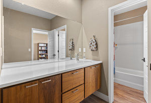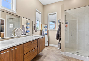 Numerous upgrades to this beautiful Brookfield home have been made by the original owners. Upgrades include two accent rock walls in the dining room and the downstairs landing. An exquisite wood beam has been added to the basement great room. New carpet and interior paint less than a year old. The extra large sliding glass doors blur the line between inside and outside living. An extra large island sets off the kitchen which has custom cabinet storage. The main level office with sliding glass pocket door is near the mud room, the large pantry, coat closet, and powder room with a custom tile wall. Three bedrooms, including the main suite with custom storage finishes in the walk in closet, are upstairs. This includes jack and jill bedrooms which share a bathroom. The basement has a lovely guest bedroom, bathroom, ample storage, and very large great room with a spacious nook for exercise equipment. Large ceiling mounted metal storage units are in the finished double garage. This home is a block from the local park and tennis court. Walk out your front door to enjoy the green space trails in Solterra. Ride your bike out of your double attached garage in the back and explore the miles of trails in Bear Creek Park, Red Rocks, and Green Mountain open space. During the summer swim at the Solterra infinity pool which overlooks Red Rocks. Not only is this location beautiful as you look at Dinosaur Ridge from the west facing bedroom but it is convenient for jumping on C-470, I-70, and 6th Avenue. This pristine home is ready for you to move in and enjoy life.