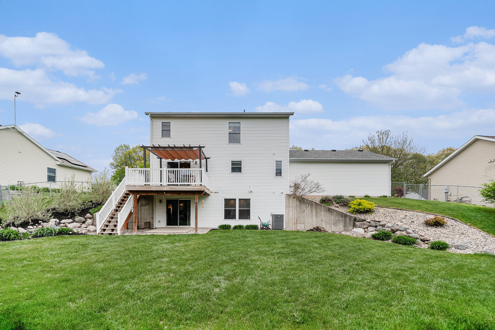 This beautifully maintained 4-bedroom, 2.5-bath residence, built in 1999, offers a perfect blend of modern comfort and traditional charm. It's located in the sought-after Northbrook Estates neighborhood, within the Comstock Park School District, a neighborhood that also provides busing directly to Rockford Schools. Its location provides quick access to schools, parks, an abundance of walking and nature trails, restaurants, shopping, and more! As you enter, you're greeted by a spacious foyer that flows into a bright, open living area with a gas fireplace, perfect for entertaining or relaxing with loved ones. The well-appointed kitchen features ample cabinetry, matching appliances (all included in the sale), and a cozy breakfast bar, providing a perfect spot for morning coffee. Adjacent to the kitchen, the dining area opens up to a lovely outdoor deck with a pergola. The main level also includes a convenient half bath, laundry room with a wash sink, and abundant storage. Upstairs, you'll find three generously sized bedrooms, including a serene primary suite complete with an en-suite bath and walk-in closet. The additional bedrooms are perfect for family, guests, or a hobby space, all offering ample natural light and closet space. The walkout lower level includes a large finished rec-room with sliders to the back patio, a 4th bedroom, and a utility/storage room. The private backyard is a true oasis, featuring a spacious patio and lush landscaping, perfect for outdoor gatherings, gardening, or simply unwinding after a long day. Other extras included a new roof in 2024, an oversized two-car garage, furnace, and central A/C that were both replaced 3.5 years ago, and more. Call today to schedule a private showing!