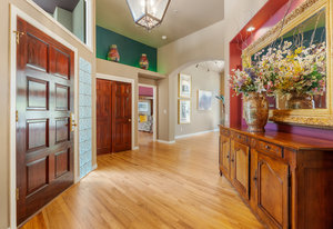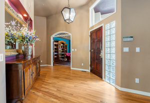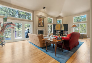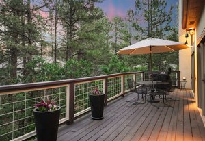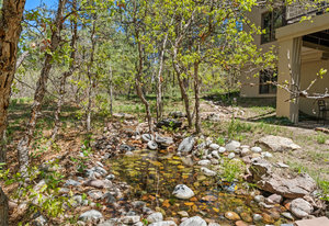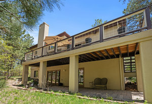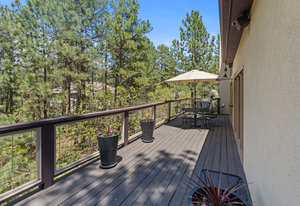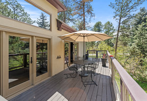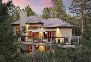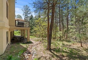 Tucked into a serene grove of towering Ponderosa Pines, this custom residence offers a rare opportunity to enjoy the beauty of Colorado living in one of the area’s most sought-after gated communities—The Village at Castle Pines. With timeless architecture and a layout designed for comfort and connection to nature, this home welcomes you with a natural paver driveway and a three-car finished garage. Inside, the main level features hardwood floors, soaring ceilings, and expansive windows that frame the surrounding trees. The living room, anchored by a gas fireplace and built-in entertainment center, opens to a large deck that runs the length of the home—ideal for enjoying peaceful mornings and golden-hour gatherings. The main-level primary suite offers private deck access, a spacious five-piece bath, and a walk-in closet. The kitchen includes an island with seating, a pantry cupboard, a built-in desk, and an adjacent eat-in dining space. A formal study with treetop views and a powder bath complete the main level. The finished walkout lower level offers a large recreation space with access to a natural stone patio and a tranquil water feature that flows into a pond. A guest bedroom, full bath, and an additional room with the potential for a third or fourth bedroom or flex space provide room to grow. Residents of The Village at Castle Pines enjoy 24/7 gated security, miles of walking trails, multiple pools, fitness center, tennis and pickleball courts, playgrounds, and a vibrant social calendar—all just minutes from Denver and the mountains.