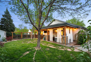 Down the hall you'll find the office, dining room and two guest bedrooms with large closets which share a fully updated bath with a marble countertop and tub/shower combo. A laundry area with built-in cabinets is conveniently located on the main level.