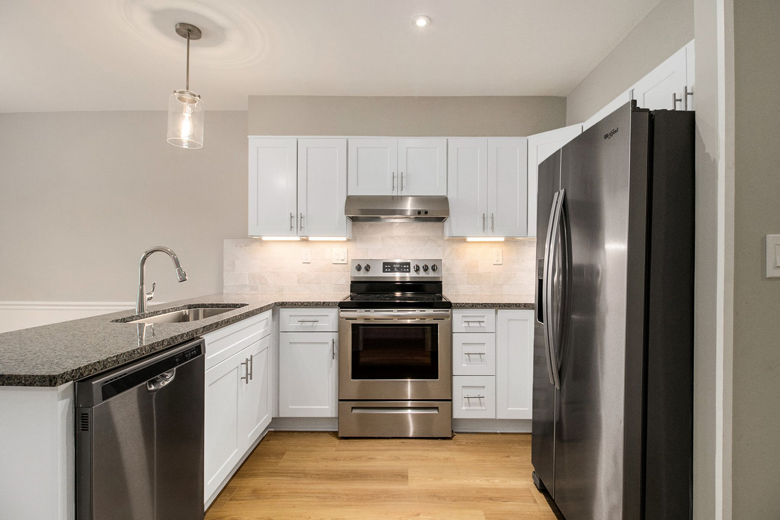 The updated white kitchen (May 2025) includes LVP flooring, soft-close cabinets, granite counter, new single-bowl stainless sink and faucet, newer stainless steel appliances, updated lighting, and a sunny and bright breakfast area. The dining and living areas are thoughtfully separated by a cozy gas fireplace, ideal for both everyday living and entertaining. Upstairs, you’ll find two large bedrooms, a versatile office/flex room, and ample closet space. A main-level powder room adds convenience, while the oversized 2-car garage and half basement provide excellent storage or room to expand.