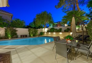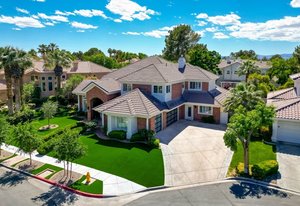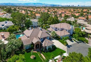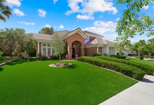 Step into timeless sophistication in this luxurious 5-bed, 5-bath estate tucked inside the prestigious guard-gated community of The Fountains in Henderson. Spanning more than 4,600 sq ft of impeccably updated living space, this home blends refined design with everyday comfort. From the grand brick façade and 2025-compliant water-smart landscaping to the vaulted ceilings, rich wood flooring, and walls of natural light, every detail speaks to quality and care. The chef’s kitchen impresses with granite countertops, sleek cabinetry, double ovens, and seamless flow into expansive living and entertaining areas. Each bathroom has been tastefully remodeled, ensuring modern elegance throughout. ...