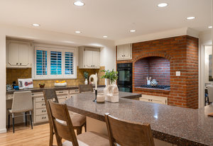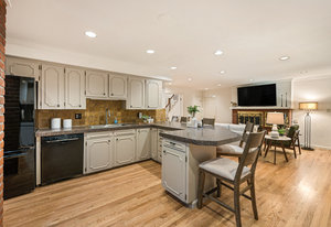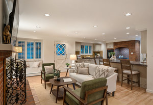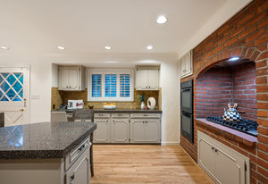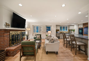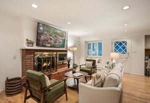 Upon entering, refinished hardwood floors and a gracious foyer with French doors introduce the home’s refined style. The inviting family room showcases a classic red brick fireplace, while the gourmet kitchen is a chef’s dream—highlighted by granite countertops, a professional 6-burner Viking gas cooktop, abundant workspace, and a charming Dutch door that opens to the backyard retreat. The covered patio, enhanced by the soothing sounds of the waterfall, creates the perfect setting for both intimate gatherings and grand entertaining.