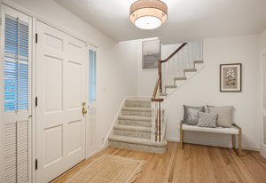 The formal living and dining rooms exude elegance, ideal for hosting memorable dinners and celebrations. Upstairs, the luxurious primary suite offers a private deck through its own Dutch door, overlooking the serene backyard. Three additional bedrooms and a beautifully appointed bath provide comfort and space for family or guests.