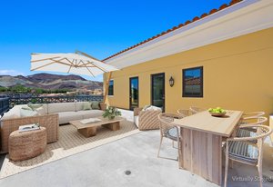Top-floor penthouse in the West Tower of Luna Di Lusso at Lake Las Vegas. This 2 bed, 2 bath condo offers 1,243 sq ft of living space and features the largest private patios in either tower—perfect for outdoor dining, entertaining, or relaxing with panoramic views of Lake Las Vegas and the surrounding mountains. Patio access is available from both bedrooms, the great room, and the dining room. Enjoy an open-concept layout with natural light, modern finishes, and a resort-style community with nearby shops, dining, and lake activities.