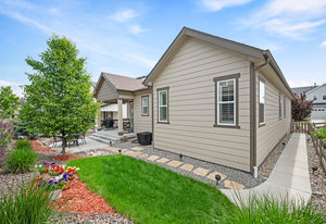 Built in 2021 and impeccably maintained, this single-level home lives like new and offers a rare blend of modern comfort and smart upgrades in one of Douglas County’s fastest-growing communities. With 3 bedrooms, 2 bathrooms, and a bright, spacious office at the front of the home, it’s a layout that fits today’s lifestyle — whether you're working from home or simply want extra space to relax. Step inside to find an open-concept living area with luxury vinyl plank flooring throughout, a clean and modern kitchen with stainless steel appliances, and seamless flow into the covered back patio — perfect for entertaining or unwinding in your private, low-maintenance backyard. You’ll appreciate thoughtful features like window shutters throughout the home and a beautifully sealed garage floor with upgraded stairs. The primary suite offers a peaceful retreat with a dual vanity, large walk-in shower, and custom California Closet organizers to keep everything in its place. Additional highlights include ceiling fans with lights in every room, upgraded front railing, and professionally designed landscaping with pathway lighting that elevates the curb appeal day and night. Located in the highly desirable Sterling Ranch community — nestled between Roxborough and Chatfield State Parks — you’re just minutes from the mountains, scenic trails, and all the shopping, dining, and conveniences that make this area one of Denver’s most exciting places to call home.
