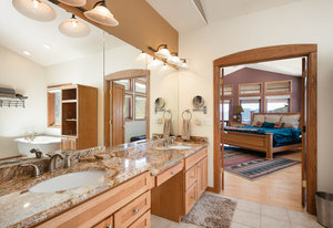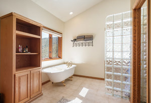 kitchen and great room, offers a spacious area for outdoor entertaining and relaxing. Main floor primary oversized suite with a spacious spa-like bathroom that leads out to a covered deck wired for a hot tub. Main floor study/home office is in addition to the 5 bedrooms. 2 upper level bedrooms with a Jack n Jill bathroom, plus 2 additional lower level bedrooms. The lower level