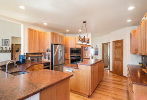 throughout the home. Open kitchen with hickory cabinets with full extension drawers