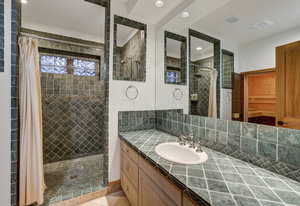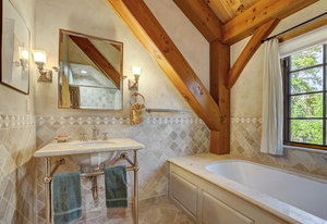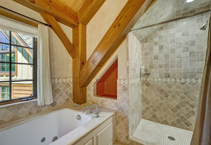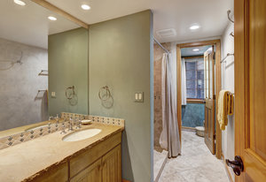 Upstairs, the primary suite is a private retreat with panoramic mountain views, abundant natural light, and a walk-in closet. Downstairs, unwind in the oversized tiled shower or relax in the walk-in sauna, complete with a unique peekaboo window feature.