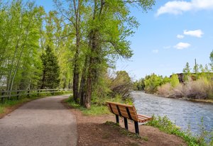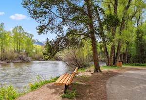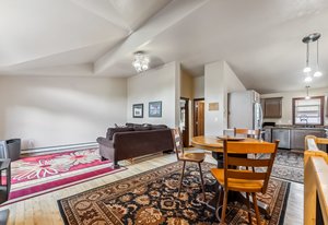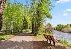 Prime Location in Silverthorne, Colorado! This beautifully maintained property is just steps from the Blue River, the scenic recreational path, and Willow Grove Open Space. It features three spacious bedrooms and three full bathrooms. Upstairs boasts stunning Blue Pine beetle kill floors and a gourmet kitchen equipped with stainless steel appliances, granite countertops, soft-close cabinets, and more. The open-concept living room is light-filled and welcoming, with cathedral ceilings a spacious living room and a cozy gas fireplace.