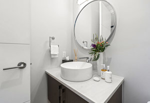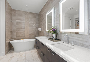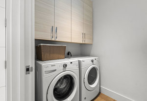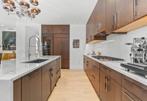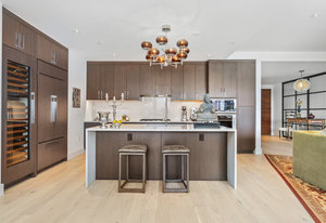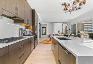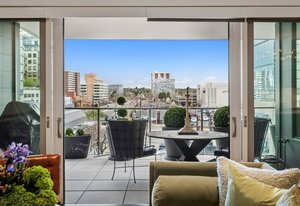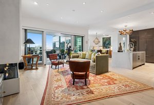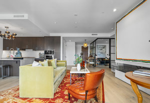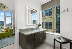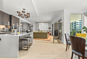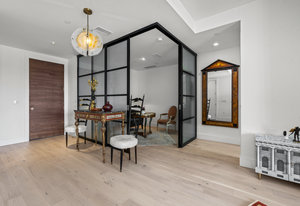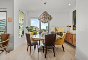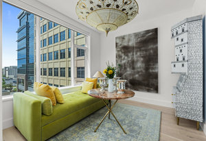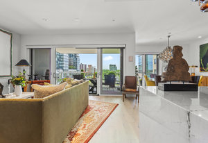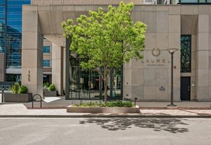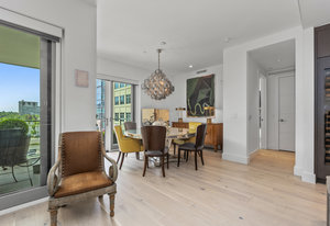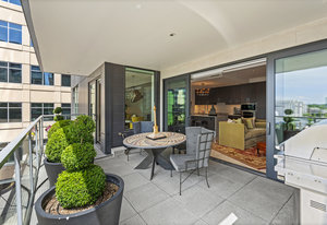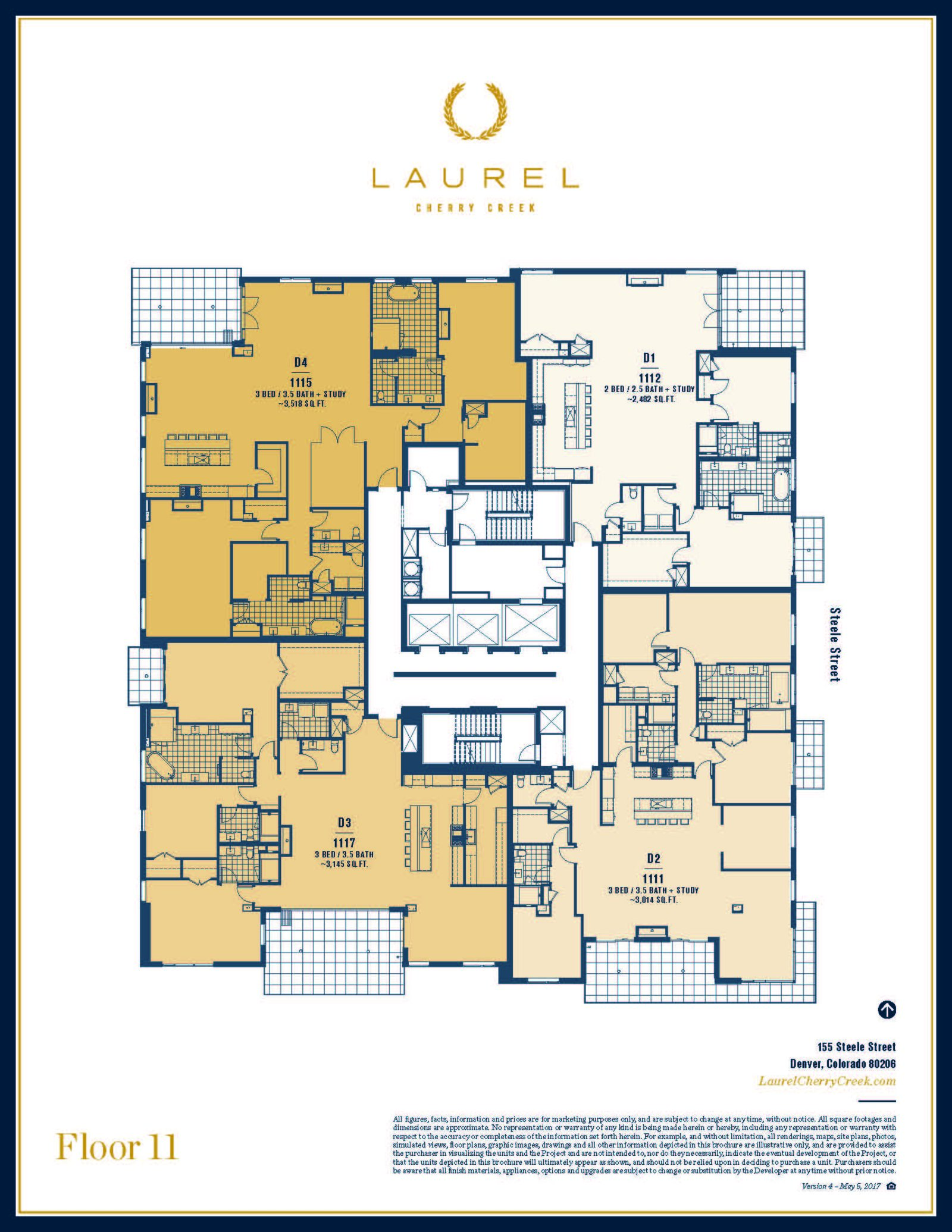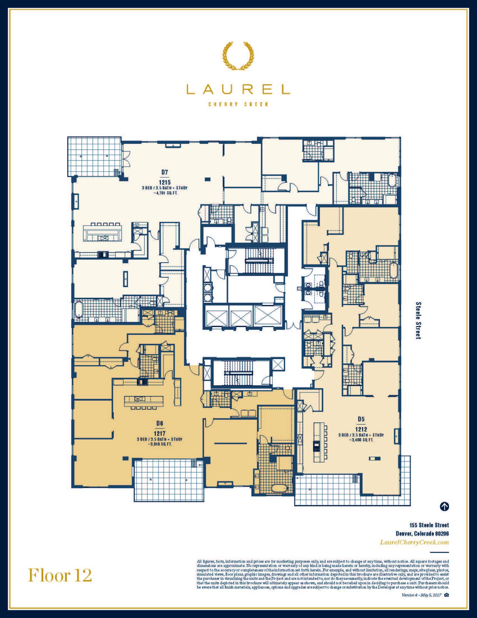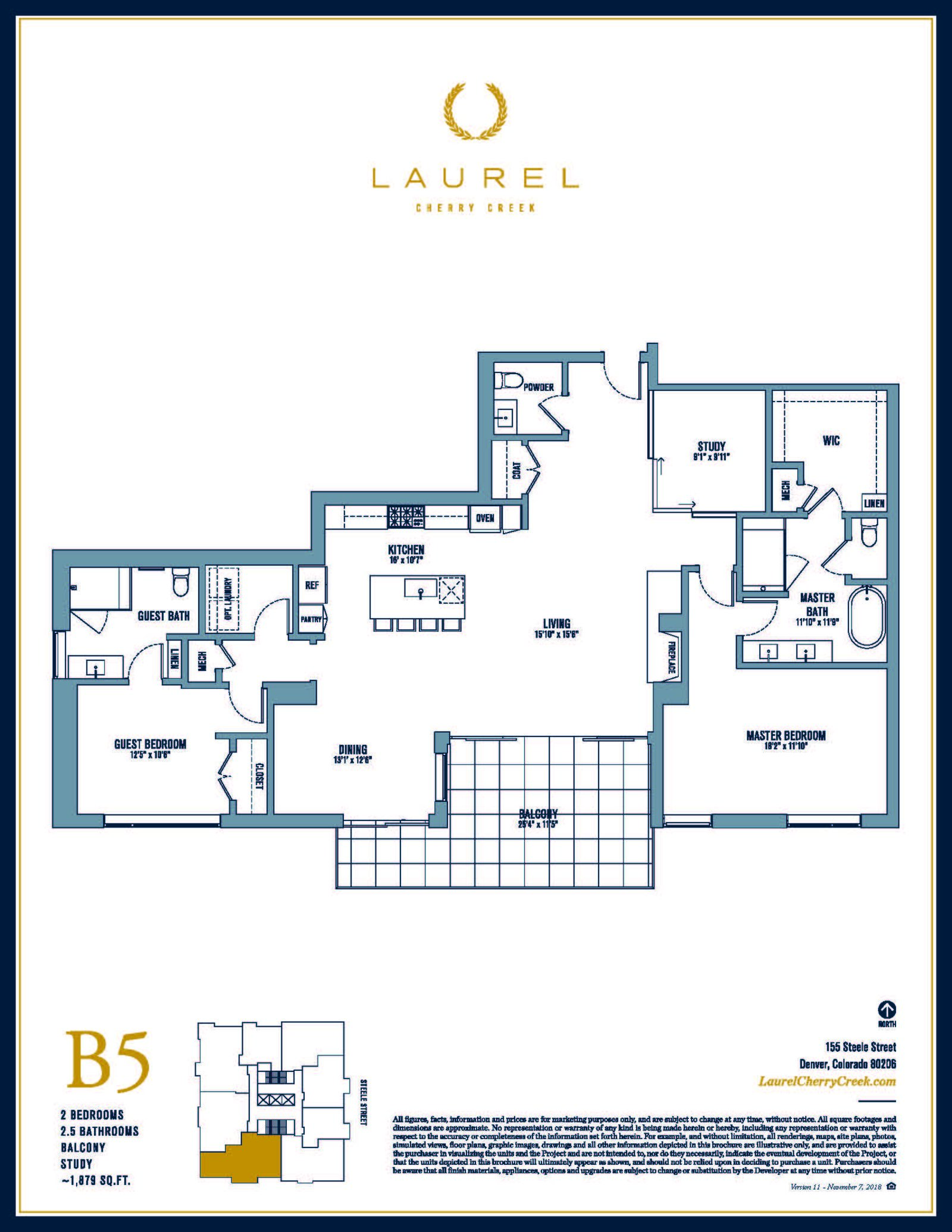 Elevated design. Uncompromising detail. This rare southwest corner residence at Laurel Cherry Creek, located in Denver’s tony Cherry Creek North neighborhood, features the building’s largest 2 bedroom, 3 bathroom layout. Exquisitely remodeled, it offers a refined blend of elegance, space, and convenience. Residents enjoy a highly walkable enclave with high end boutiques, casual and fine dining, galleries, and fitness studios. This unit features the largest private terrace (25’x11’), positioned to minimize direct summer sun and enhance nearly year round indoor outdoor living. Inside, a thoughtfully designed palette is complemented by new hardwood flooring, Lutron voltage motorized shades and lighting, and expansive sliding doors in the living and dining room that open to the terrace. A versatile den with sliding glass doors offers flexibility as an office or expanded living room. A new Marquis Enclave 60” wraparound fireplace serves as a sophisticated centerpiece in the living area. The upgraded kitchen showcases a quartzite waterfall island, counters and backsplash with sleek cabinetry, including a new Wolf M series oven, Fisher and Paykel DishDrawer dishwasher, and Sub Zero 100+ bottle wine refrigerator. The primary suite is a spacious retreat with a Haiku ceiling fan, five piece spa bath with a new 62” soaking tub, shower with new Ann Sacks penny tile, and dual sink vanity. The en suite secondary bedroom features abundant natural light through a south facing window. The only unit that includes a laundry room provides additional built in storage with washer and dryer. Enjoy an elevated, quiet, private lifestyle that includes concierge services and a spectacular rooftop deck with panoramic mountain and city views, heated pool, cabanas, grill, pizza oven, fireplace, and fire pit. Includes two parking spaces and a storage locker. Living at Laurel Cherry Creek lets you experience the vibrant lifestyle of Cherry Creek North, where luxury, sophistication, and convenience converge.