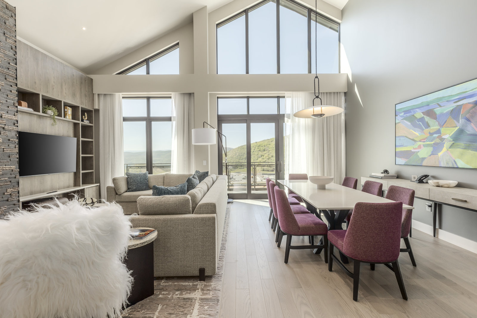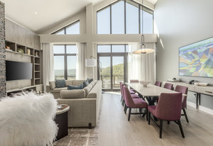 This spacious three-bedroom penthouse is sure to impress with its vaulted ceilings, views of pristine waters and Deer Valley peaks, and the undeniable allure of top-floor living. Superior Grand Hyatt service awaits you after long days of world-class skiing, shopping, and dining just steps from the building entrance. All 2028 sq ft of this residence are luxuriously crafted with hardwood floors, stone countertops and fireplace, and artisanal cabinetry, tile, and lighting. The residence's high ceilings and large balcony capture the year-round natural lighting that results from its ideal south-facing location. All furniture in photos is provided with the residence including in-residence washer and ...