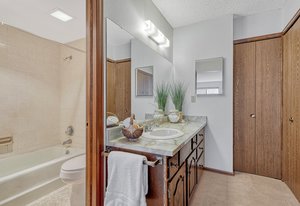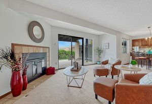 Exceptional value in Villa Sierra, this spacious ground-level three-bedroom condo offers comfort, flexibility, and some of the community’s most desirable outlooks. With 1,556 square feet, the well-designed floor plan allows for easy daily living while providing adaptable spaces to suit your lifestyle. The open living and dining areas extend to a private covered patio with storage, perfect for morning coffee or unwinding in the evening while enjoying mountain silhouettes and a glimpse of Garden of the Gods in the distance. Inside, a gas fireplace adds warmth and ambiance, while a beverage bar and in-unit laundry (washer and dryer included) add everyday convenience. The generous primary suite serves as a relaxing retreat with three closets and a private ensuite bath. Two additional bedrooms offer flexibility for guests, a home office, creative space, or fitness room, and share a centrally located bathroom. Storage is plentiful throughout, complemented by an oversized detached one-car garage. Residents of Villa Sierra enjoy a secure staffed entry, seasonal pool, tennis and pickleball courts, and beautifully maintained grounds. The home’s vintage character provides a wonderful opportunity to enjoy as-is or thoughtfully update over time. A rare ground-level offering with space, views, and exceptional potential.