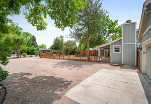 Beautiful Home + Huge Workshop = A Rare Find in Centennial, CO! This charming mid-century ranch is in a desirable south metro suburb located in the popular Littleton Public School District. 5 bedrooms, main floor updated bath, new roof, HVAC, Water Heater, paint, lighting, electrical panel, and sewer line. This wonderful opportunity has hardwood floors and new luxury vinyl floors in kitchen with an open main floor. The master suite has a fireplace and a separate sitting area with a large walk in closet. Enjoy an additional 5th bedroom or home office adding value with new sliding door and LTV flooring. In the basement, you'll find 2 more bedrooms and bathroom. All the systems have been recently updated including the hot water heater. The detached 2 car garage has a large extended approx. 400 sq ft work area that could be finished for Air BNB or home office space. Dry wall almost completed. This space has electrical and a heating system installed. (furnace installed by previous owner and never used/hooked up by current owner) The property is located on a large lot with mature trees, plenty of room for gardening, RV parking or guest stays. The front concrete courtyard has several sitting areas perfect for entertaining around the firepit. In the backyard , enjoy a wood deck off of the kitchen and space for garden or dog run. This adorable home is within walking distance to the Highline Canal and the Greenwood Village Equestrian Center. Grocery shopping center is just 5 minutes away and there are numerous public parks within walking distance. Located in a small, unique neighborhood with wide tree-lined streets providing tranquility. This turn key home is the perfect combination of live/work and relax.