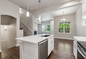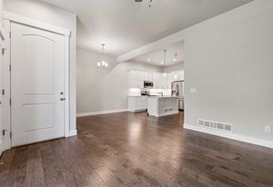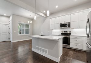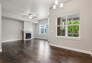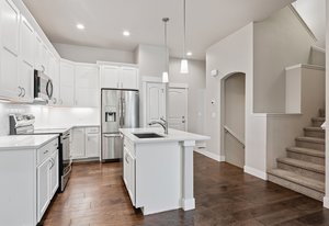 Welcome to 2486 Trio Falls Drive, a beautifully appointed townhome situated in the desirable Lakes at Centerra community. Built in 2020, this modern residence offers 2,273 square feet of stylish living space with three bedrooms, two and a half baths, and an attached two-car garage. With access to resort-style amenities and surrounded by natural beauty, this home is the perfect blend of low-maintenance living and contemporary design. Step inside to an open-concept main floor that's filled with natural light and thoughtful finishes. Rich wood flooring flows throughout the main living spaces, where a cozy gas fireplace creates a warm and inviting atmosphere. The kitchen is a standout feature, boasting a large island, stainless steel appliances, quartz countertops, and a designer tile backsplash-ideal for both entertaining and everyday meals. A chic powder room completes the main level, adding both convenience and charm. Upstairs, the primary suite offers a peaceful retreat with a spacious five-piece bath and walk-in closet. Two additional bedrooms provide comfortable accommodations, while the upstairs laundry room adds practical ease to daily routines. The full unfinished basement with egress windows and bathroom rough-ins offers a blank canvas for future expansion, whether you envision a home office, gym, or additional living area. Enjoy outdoor living on the private, fenced front patio, perfect for morning coffee or evening gatherings. The community HOA maintains exterior landscaping, snow removal, and grants access to exclusive neighborhood amenities, including a clubhouse, pool, playground, and serene walking trails. Ideally located near Centerra's shopping, dining, and recreational offerings, with easy access to I-25 and local schools, this home combines comfort, convenience, and community in one exceptional package. Move-in ready and thoughtfully designed, a true gem in the heart of Loveland.