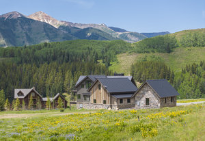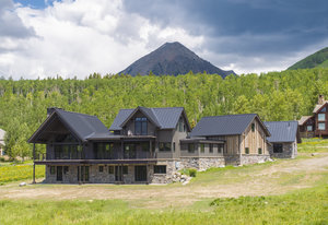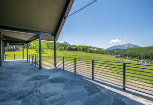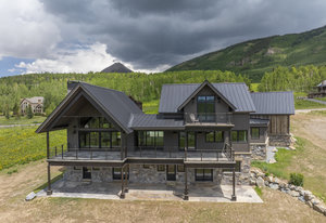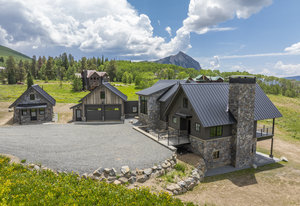 Wow! Completed in 2025, the mountain modern design-build at 470 Meadow Drive will knock the skis off your feet. This offering has it all: A south-facing 1-acre perch at the top of coveted Meridian Lake Meadows with stunner views in every direction and huge covered stone decks and patios framed in beautiful structural steel beams. When is the last time you stood on a stone deck? The main level features spacious dining and living areas anchored by more incredible steel beam work, white oak wide plank floors and an impressive floor-to-ceiling Rumford wood burning fireplace wrapped in a gorgeous steel surround and finished with a rock and steel hearth. Are you kidding me?The entertainer's kitchen features Wolf-Subzero-Cove appliances, a wet bar, a massive quartz center island, tons of storage and million dollar views from the sink! A dramatic floating oak and steel staircase gets you up to a large primary suite with it's own deck and down to a lower level living room, three guest quarters and a large laundry room. For those bigger family and friend gatherings the well equipped, separate one-bedroom 540 SF guest house will come in handy. Big vehicles and tons of toys? No problem. The gigantic 816 SF garage offers vaulted ceilings, a big storage loft and doors for tall vehicles. Andrew Hadley Architects and David Gross General Contractor created this incredible offering.