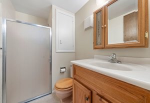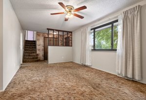 Upstairs, retreat to your private primary suite, complete with its own ¾ bath and tranquil views. Additional bedrooms are generously sized, with hardwood flooring believed to be preserved beneath the carpet, waiting to be revealed. A full bathroom conveniently serves the upper level.