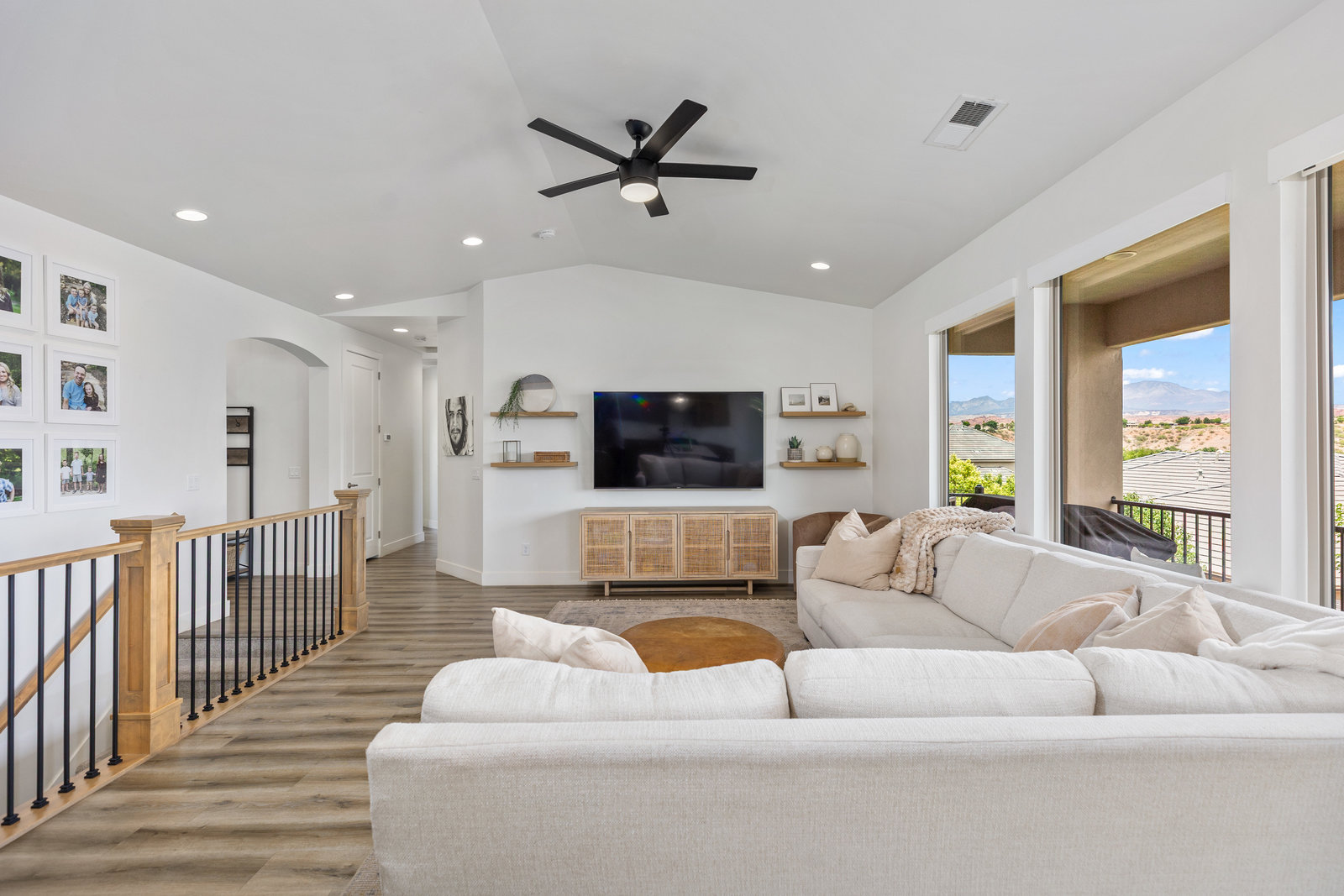 Located in one of Santa Clara’s most desirable neighborhoods, this beautifully maintained 7-bedroom home offers exceptional space, comfort, and breathtaking views of the Red Mountains and Pine Valley. Designed with both elegance and practicality in mind, the home features brand-new carpet throughout, a high-performance kitchen complete with wood cabinetry, a contrasting white painted island, granite countertops and a generous walk-in pantry. Custom blinds throughout the home. The fully finished walkout basement provides a spacious recreation room, abundant storage, a large shelved closet, and convenient backyard access via a custom spiral staircase from the deck. Step outside to an entertainer’s dream backyard, featuring an in-ground trampoline, playground, sandbox, and climbing dome. Situated in the scenic and friendly community of Santa Clara, this home is just minutes from Snow Canyon State Park, Fire Lake Reservoir, Tuacahn Amphitheatre, numerous hiking and biking trails, and nearby recreational vehicle access. The charming frei's fruit market just down the street and Black Desert which now hosts the PGA tour. It's only a short drive to America's most astonishing national parks, such as Zion, Bryce, and the North Rim of the Grand Canyon; and state parks and national forests like Snow Canyon, Sand Hollow Reservoir, Gunlock Reservoir, Quail Creek Reservoir, and Dixie Forest. This tranquil home is the perfect setting for you to establish your own gathering place in the heart of Southern Utah.