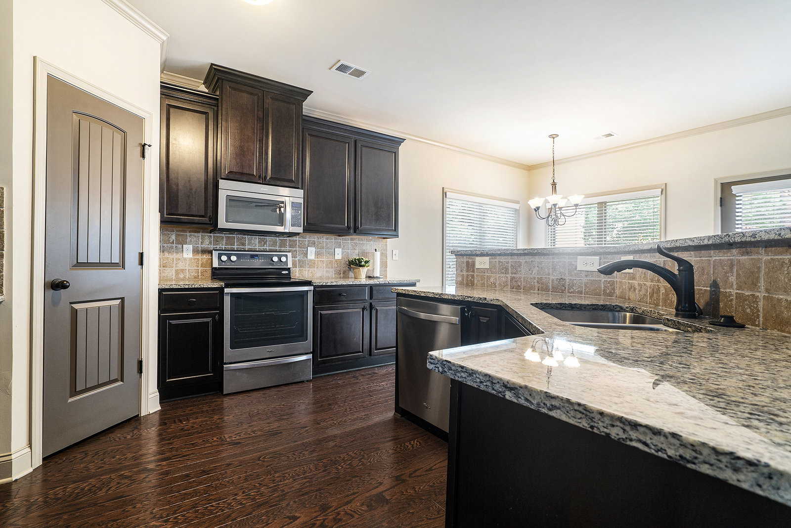 Peachtree Corners beautiful move-in ready townhome, Minutes to The Forum and Town Center. Three level townhome with low HOA dues. Kitchen opens to spacious fireplace family room and dinging area, offers stainless steel appliances, granite countertops, tile back splash, well maintained like new condition. Upstairs Master bedroom with garden tub, his and her vanity, Large walk-in closet with access to laundry room. Two large additional bedrooms with bay window and a full bathroom. Finished terrace level basement with full bathroom, plenty of space for entertainment or in-law suite. New AC compressor, newly painted deck.