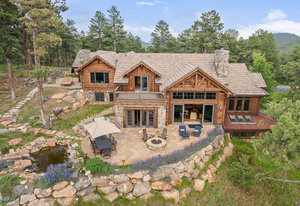 Unrivaled Mountain Luxury with Panoramic Views of Mt. Blue Sky Welcome to 2929 Highlands View Rd—a Colorado mountain masterpiece where luxury, craftsmanship, and nature converge. Perched on a private parcel with expansive, unobstructed views of Mt. Blue Sky, this exceptional residence showcases superior construction and custom finishes that blend seamlessly with its breathtaking surroundings. From the moment you step inside, floor-to-ceiling windows frame the stunning landscape, filling the home with natural light and drawing the outdoors in. Rich rustic wood flooring, timber beam accents, and handcrafted Alder cabinetry and trim set a tone of warm sophistication throughout. Designed for both effortless living and elevated entertaining, the open-concept layout features a gourmet kitchen complete with Wolf appliances, 3-inch granite countertops, and seamless flow into the breakfast nook, formal dining room, and great room. Extend your gatherings outdoors to the expansive patio retreat, complete with a built-in kitchen, firepit, and tranquil water feature—ideal for soaking in golden Colorado sunsets. Upstairs, the primary suite is a private sanctuary, offering a cozy sitting area with fireplace, access to a secluded patio, and a luxurious bath with walk-in shower, soaking tub, and generous space to unwind. Two additional bedrooms, a full bath, and a private main-level office provide comfort and versatility, while the finished lower level boasts high ceilings, a secondary master suite, theater room, and custom bar for the ultimate entertainment zone. With easy access to I-70, you're just minutes from both Denver’s urban energy and world-class mountain escapes—all while enjoying the peace, privacy, and prestige of Evergreen. This is more than a home—it’s Colorado living at its finest.