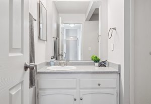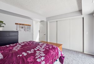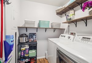 The generously sized bedroom includes a large closet and private access to the deck. The bathroom has a smart layout with a separate vanity area, and the full-sized washer and dryer (included in sale) are conveniently located in a spacious laundry room with excellent storage. An additional outdoor storage closet provides even more room for your gear.
