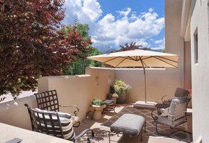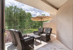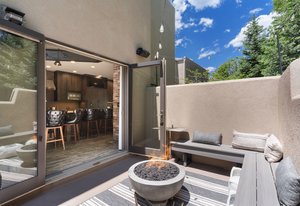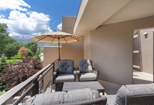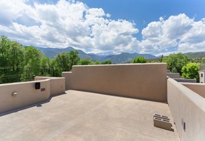 Four outdoor patios, including a kitchen patio with a built-in composite bench and steel framing with under lighting, and a rooftop terrace reinforced for a hot tub, and gorgeous Pike's Peak views provide incredible outdoor living.