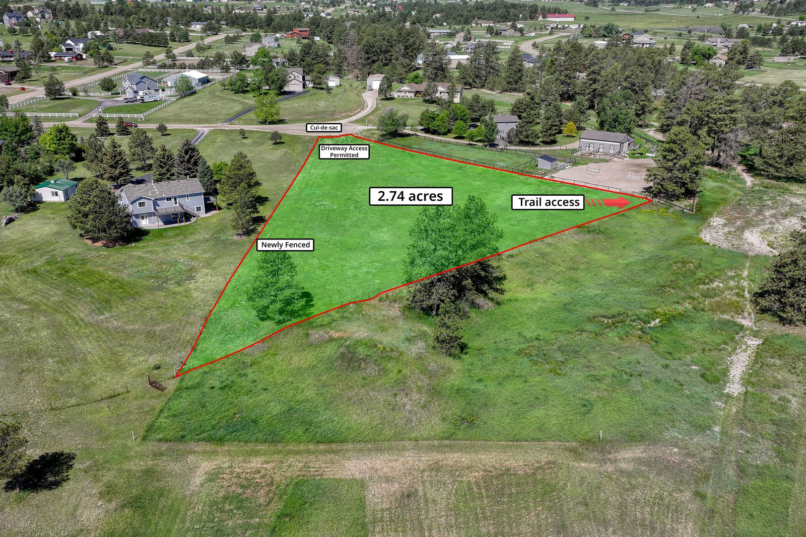 Grab it while you can! They aren't making any more, and this one is perfectly situated in the popular Western Country Ranches neighborhood. This 2.7-acre homesite is one of the last lots available and sits on a peaceful cul-de-sac, surrounded by beautifully maintained homes. Western Country Ranches is a premier equestrian community, offering miles of private riding trails and scenic open space. This lot backs directly to the trail system and open space, with mature pines and a seasonal creek adding natural charm. Improvements include new fencing on three sides and a recently installed driveway. Utilities—power and natural gas—are available at the lot line. Enjoy the quiet country setting with the convenience of being just 5 minutes to Elizabeth’s shopping and dining, and only 30 minutes to Parker or Castle Rock. A rare opportunity to build your dream home in an established, horse-friendly neighborhood!