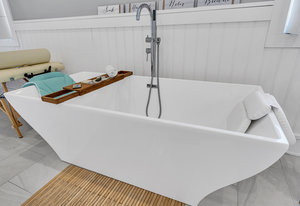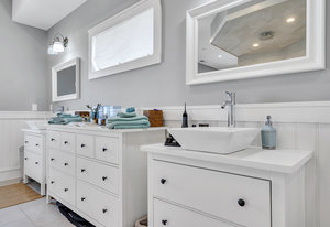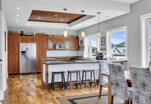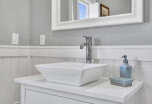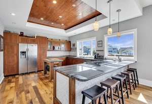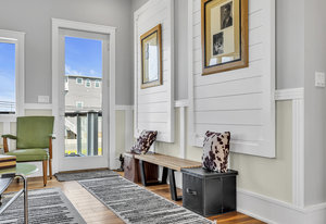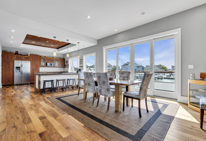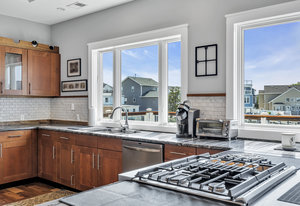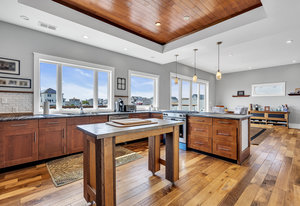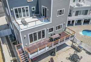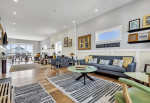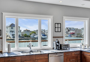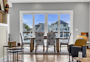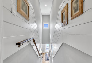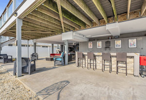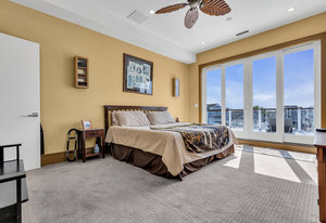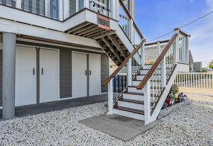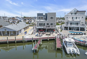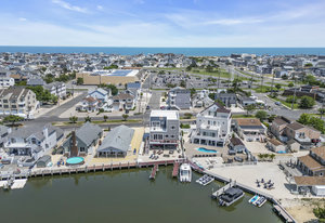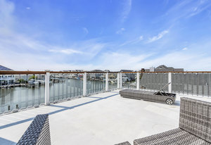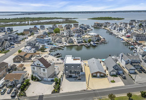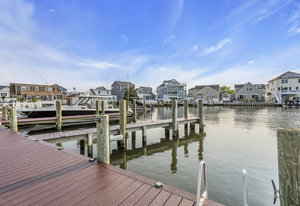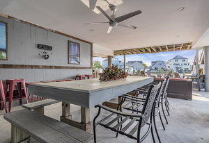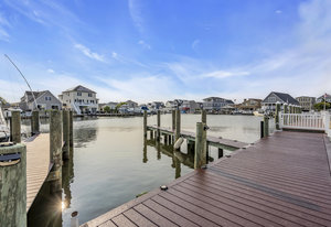RARE COVE-FRONT OPPORTUNITY with TWO 30' finger docks and 52' of vinyl bulkhead—ideal for multiple boats, water toys, crabbing and fun in the sun. Oversized 52x127 lot with ROOM FOR A POOL. Built in 2018, thoughtfully designed 5 BR, 3.5 BA coastal retreat maximizes its prime waterfront setting with multiple large decks, an open floor plan and walls of windows that frame tranquil cove views. Ten-foot ceilings and transom windows create a bright, airy feel throughout. Upper level offers a generous den and a private primary suite with sliders to a large deck, dressing/workout area and impressive spa-inspired bath. Oversized lot boasts exceptional outdoor entertaining with covered seating. Workshop, storage, carport. Plenty of parking. It's stylish, spacious + nearly impossible to replicate!