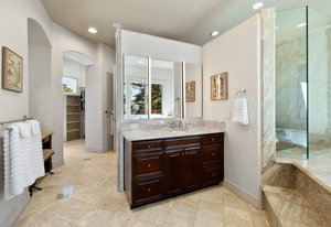 Arrowcreek Luxury Living - 3387 Nambe Drive Set on one of Arrowcreek's most beautiful streets, 3387 Nambe Drive is a rare single-level luxury home that captures everything people love about life in Reno's premier gated golf community. Designed for both everyday comfort and elegant entertaining, it offers seamless indoor-outdoor living and sweeping 180-degree views of Reno, and sparkling city lights. Arrowcreek is about lifestyle—golf, fitness, pickleball, social gatherings, and time spent in a true community. Residents enjoy resort-style amenities including pools, a fitness center, tennis and pickleball courts, walking trails, and 24-hour security—all minutes from home. Nambe Drive is especially sought after for its privacy and proximity to the gate, club, and town. Open space behind and a protected meadow in front frame the home in tranquility, while the wrap-around deck captures one of Reno's most spectacular panoramas. Custom-built by Steve Miles, this home reflects craftsmanship and attention to detail rarely seen today. Solid wood doors, wood-framed windows, geothermal heating, dual HVAC systems, and refined finishes define its timeless character. The kitchen with built-in dining and butler's pantry opens to bright living areas and multiple outdoor spaces, including three distinct landscaped yards ideal for gatherings or quiet retreat. The primary suite offers a private wet bar, mini-fridge, and microwave, while the opposite wing features guest rooms, a home office, and a steam shower. A 1,544 sq. ft. five-car tandem garage, 1,110 sq. ft. finished walk-out basement, full-home water purification, and central vacuum complete the package. To recreate a home of this quality and design on a comparable Arrowcreek lot today would likely exceed 7 million, not counting years of planning. 3387 Nambe Drive delivers that level of craftsmanship and serenity—ready to enjoy now in one of Reno's most prestigious gated communities.