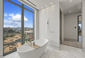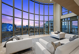 Experience unmatched luxury in this one-of-a-kind 2-story PH at Park Towers. This residence offers breathtaking, panoramic views of Las Vegas Strip, incl The Sphere, High Roller & Mtns, capturing the city's vibrant energy. Expansive living areas feat. rich hardwood floors & custom cabinetry that exude elegance & craftsmanship. The chef’s kitchen, equipped with top-tier appliances & ample counter space, is perfect for casual meals or gourmet feasts. The primary suite offers dual baths, dressing rooms, & a freestanding tub with stunning Strip views, creating a private spa-like retreat. 2 add. suites provide ample space & privacy for guests, ensuring everyone ...