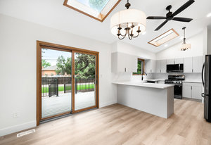 A fully remodeled blend of modern refinement & architectural warmth, this Boulder residence showcases craftsmanship & design. Nestled in a serene enclave, every level of this thoughtfully curated home offers style, comfort, & enduring quality. On the main level, a updated sunroom includes a dedicated split-unit AC/heater—perfect for enjoying Colorado’s seasons year-round. The heart of the home, the fully remodeled kitchen, features sleek new LG appliances, refined cabinetry, & contemporary fixtures, all near a generous living space. Expansive Anderson windows & a matching patio slider invite natural light & provide seamless indoor-outdoor flow. The mid-level offers a private retreat w one beautifully appointed bedroom & a remodeled bathroom featuring a modern walk-in shower—ideal for guests. Upstairs, a second bedroom & updated bathroom set the tone for elevated living. The primary suite is a masterclass in understated luxury, complete w a cozy wood burning fireplace, dual-sink vanity, & an elegant walk-in shower. Thoughtful touches like upgraded doors—either newly installed or custom-stained — add harmony & intention throughout. The lower level is fully finished, providing two additional bedrooms & anchored by an updated wood fireplace, blending warmth w sophisticated style. Whether used for family, guests, or creative space, each room reflects the home’s commitment to style & usability. A finished garage features a new door & frame, adding both visual appeal & convenience. New LVP flooring, fresh interior/exterior paint, & all-new light fixtures elevate every corner. Behind the walls, a new electrical panel, wiring, switches, & outlets ensure modern performance w timeless aesthetics. Outside, a new Trex deck offers the perfect backdrop for dining al fresco or entertaining under the stars. The original brick exterior has been lovingly preserved, creating a stunning architectural statement, & the new Anderson front door opens to a welcoming interior. Huge backyard!