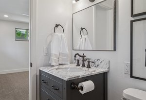 Upstairs, three bedrooms include a serene primary suite with a fully renovated en suite bath, while a full hall bath serves the secondary bedrooms. The lower level offers a second living area with a wood-burning fireplace, a fourth bedroom, another updated bathroom, and a custom mudroom with built-ins and herringbone-laid stone tile. The finished basement provides versatile flex space, additional storage, and a non-conforming bedroom ideal for guests, fitness, or creative use.
